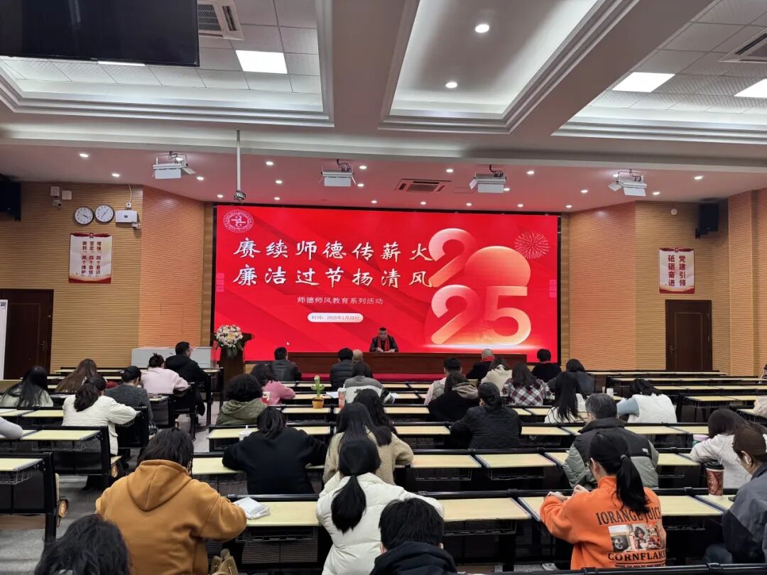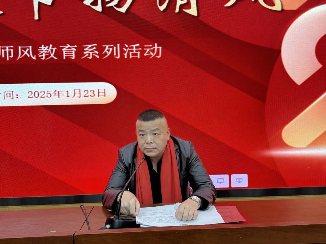 随着寒假脚步临近,我校于2025年1月 23 日下午召开了一场意义非凡的寒假前教工大会。本次大会聚焦师德师风建设,为全体教职工筑牢思想防线,助力大家度过一个廉洁、祥和的春节。