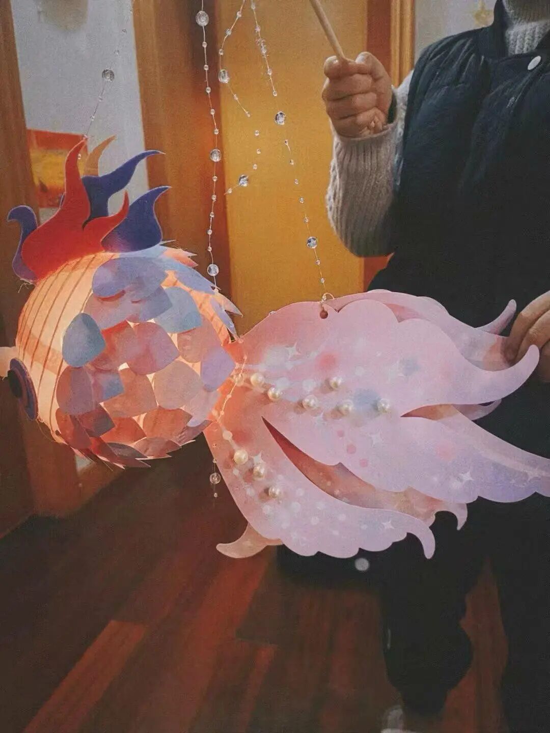 元宵节游玩观赏的主要对象是花灯,又叫“彩灯”、 “灯笼”。同学们运用自己的奇思妙想,结合元宵节的特点,制作了款式各样,色彩缤纷的花灯和节日作品。