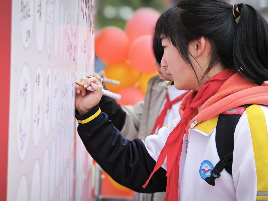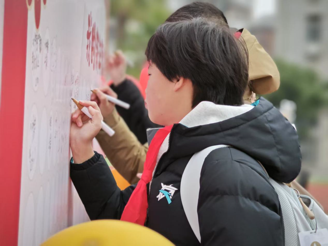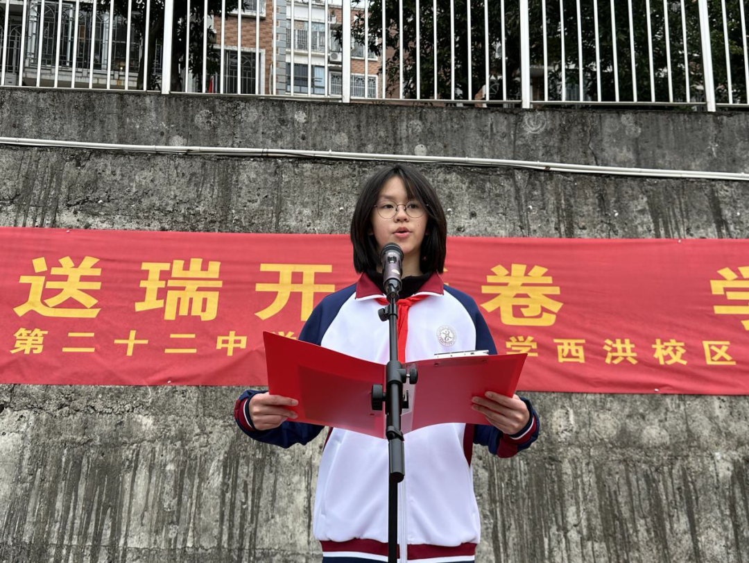 初一(1)班的连颂同学作为学生代表发言,连颂同学和大家分享了三个关键词:“打破偏见”、“传承文化”、“保持好奇”。希望同学们把哪吒的倔强融入到骨子里,把文化的根深深扎进土壤,带着 AI 时代赋予我们的智慧,在这个崭新的学期里,尽情书写属于我们的青春诗篇!