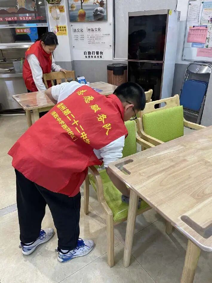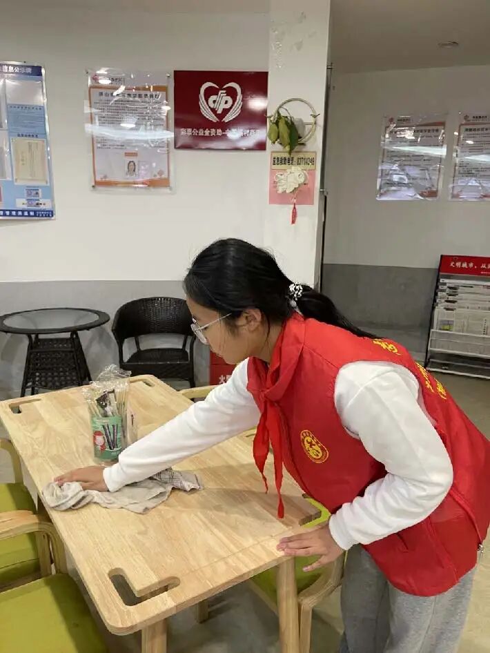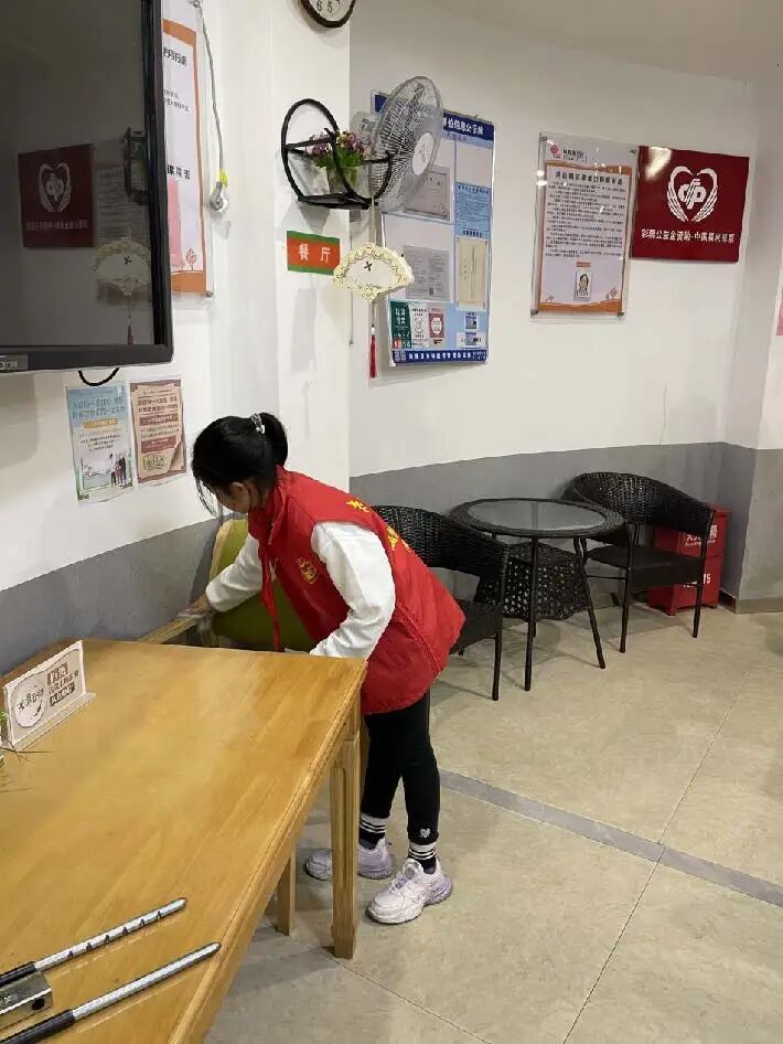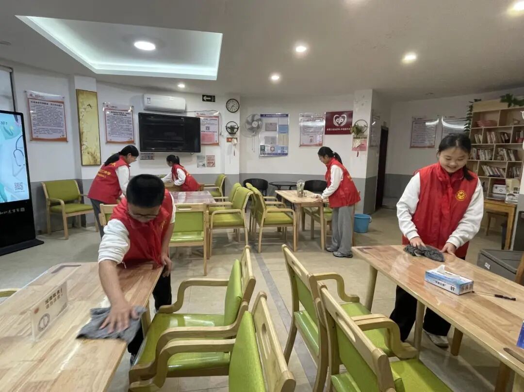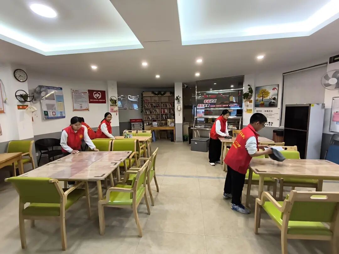 3月4日下午,我校党员教师带领同学们到凤凰池社区长者食堂开展卫生清洁活动。一到长者食堂,同学们便投入到紧张而有序的卫生工作中。他们分工明确,有的擦拭餐桌,有的清扫地面,有的整理餐具。在劳动过程中,同学们发扬不怕脏、不怕累的精神,将长者食堂打扫得焕然一新。