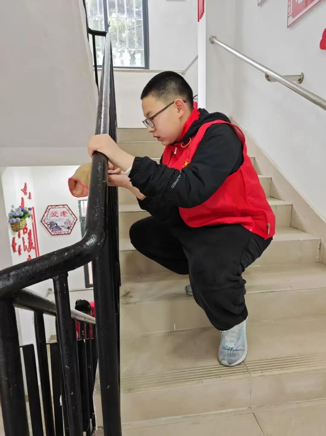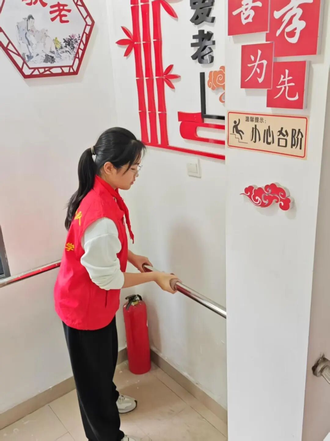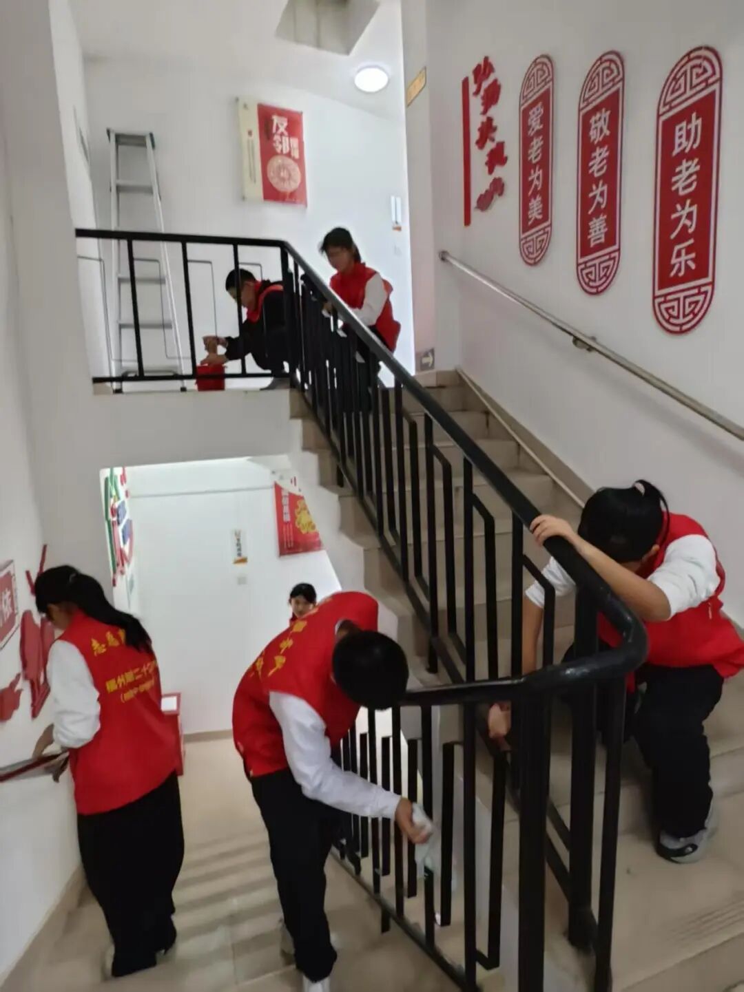 3月4日下午,我校党员教师带领同学们到凤凰池社区长者食堂开展卫生清洁活动。一到长者食堂,同学们便投入到紧张而有序的卫生工作中。他们分工明确,有的擦拭餐桌,有的清扫地面,有的整理餐具。在劳动过程中,同学们发扬不怕脏、不怕累的精神,将长者食堂打扫得焕然一新。