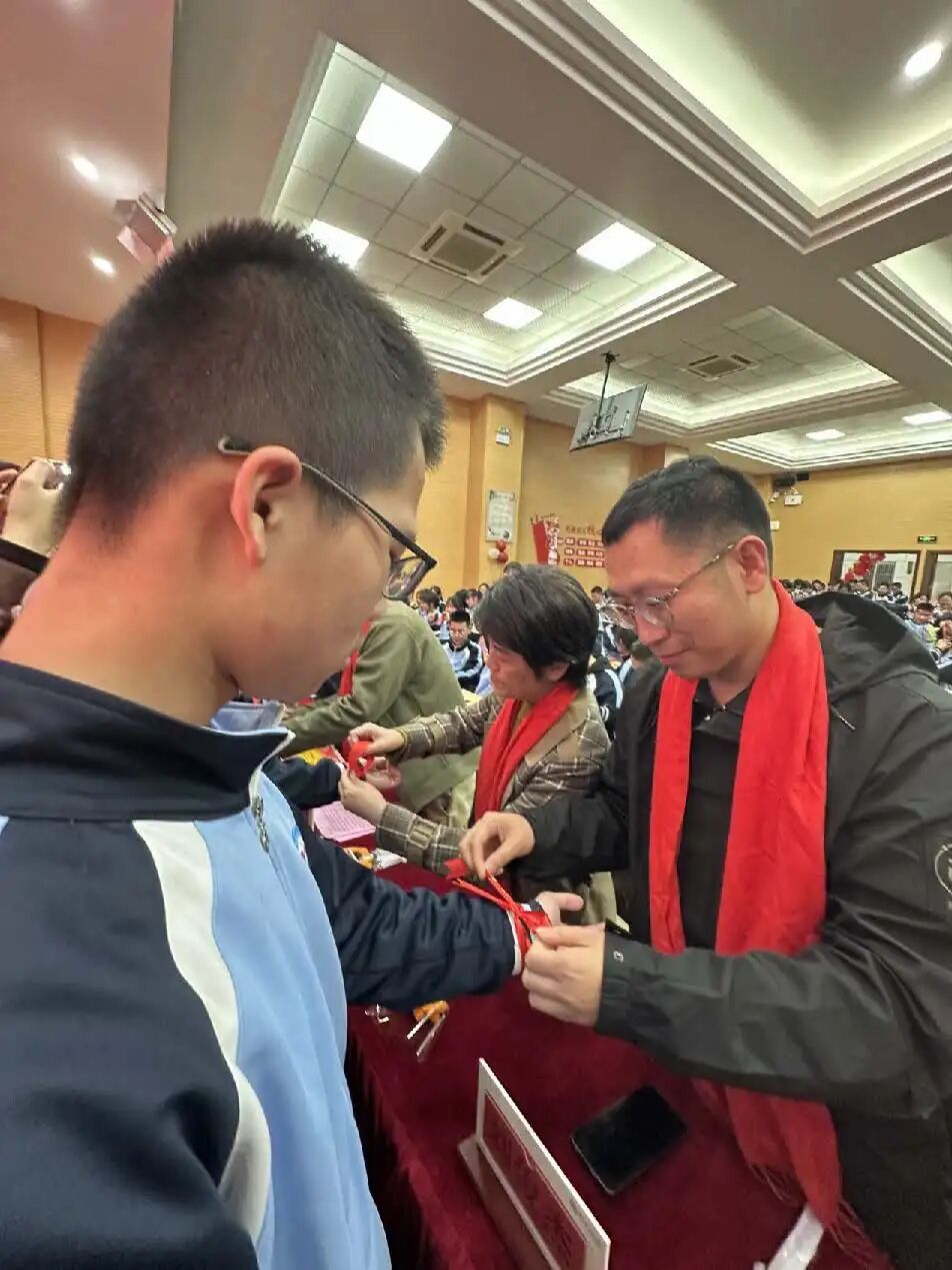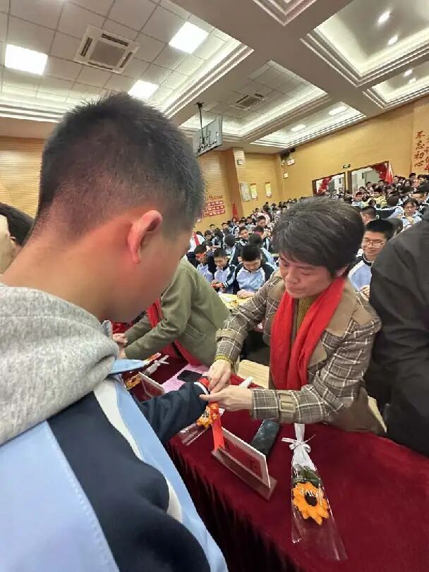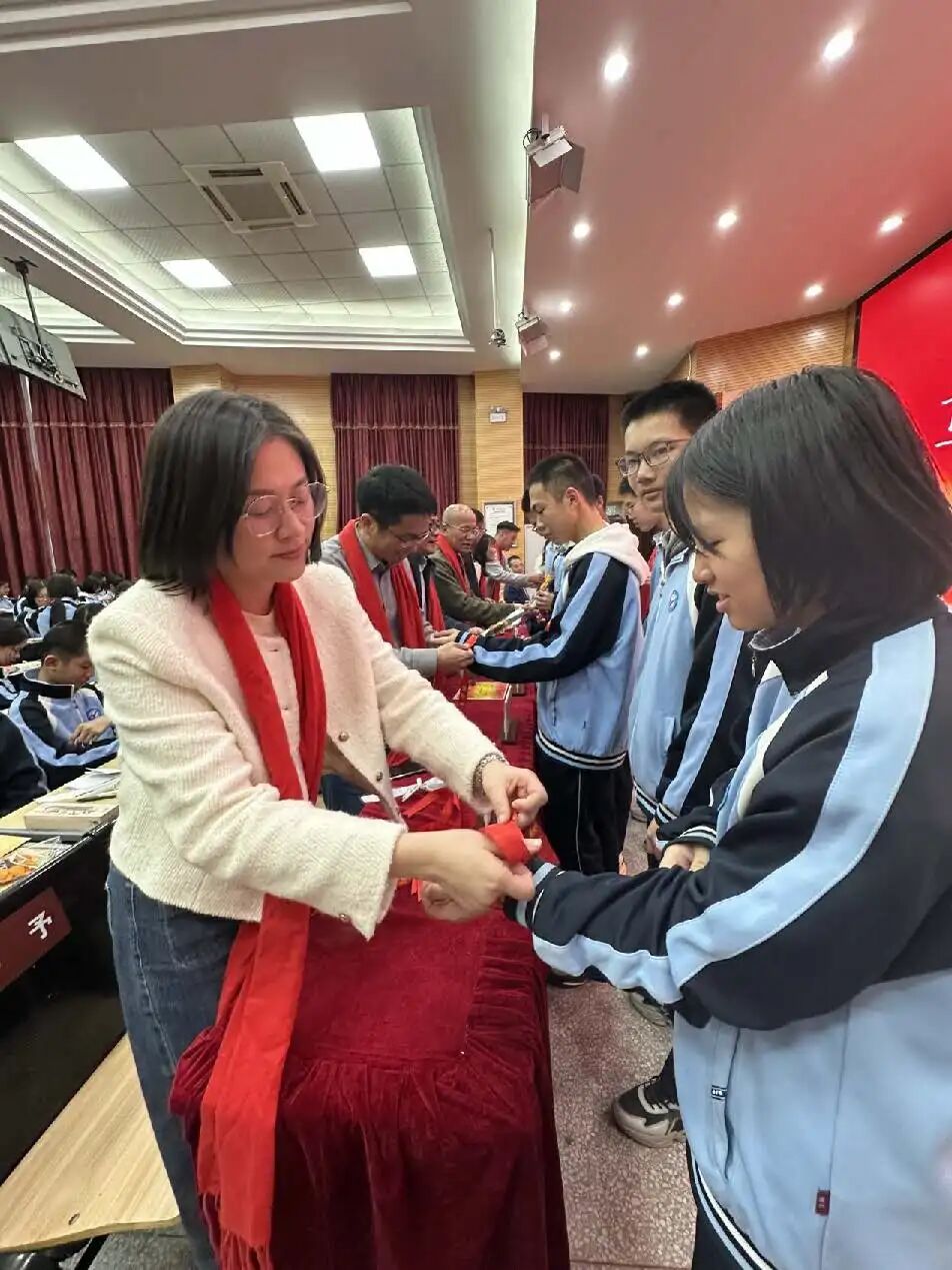 翰墨飘香育桃李,丝带传情送祝福。红色,彰显热烈与奔放;红色,预示幸运与吉祥。同学们互相为彼此系上红丝带,送去对同窗挚友最真切的鼓励与关怀。