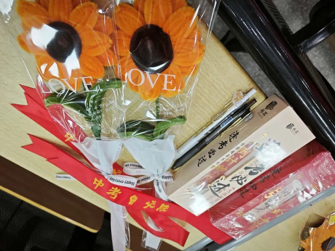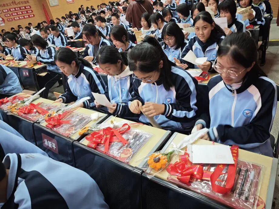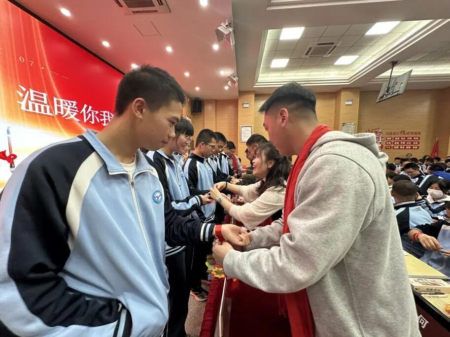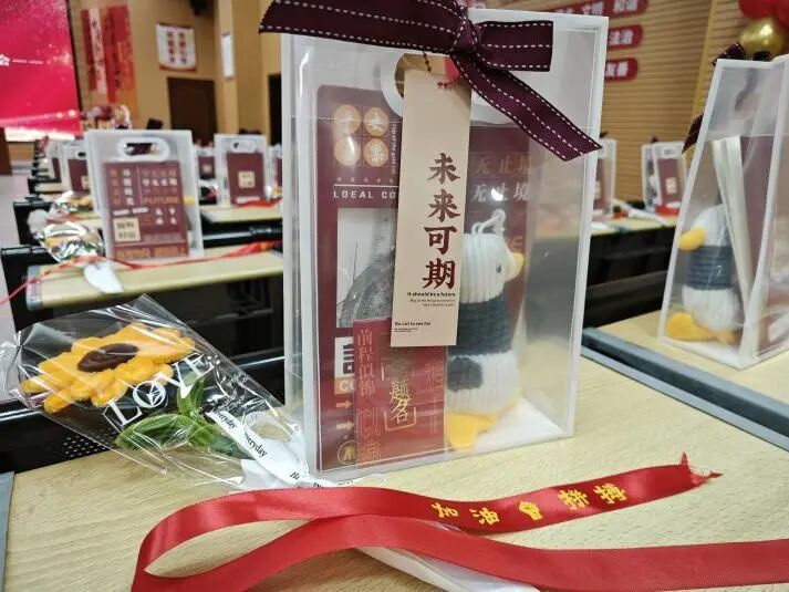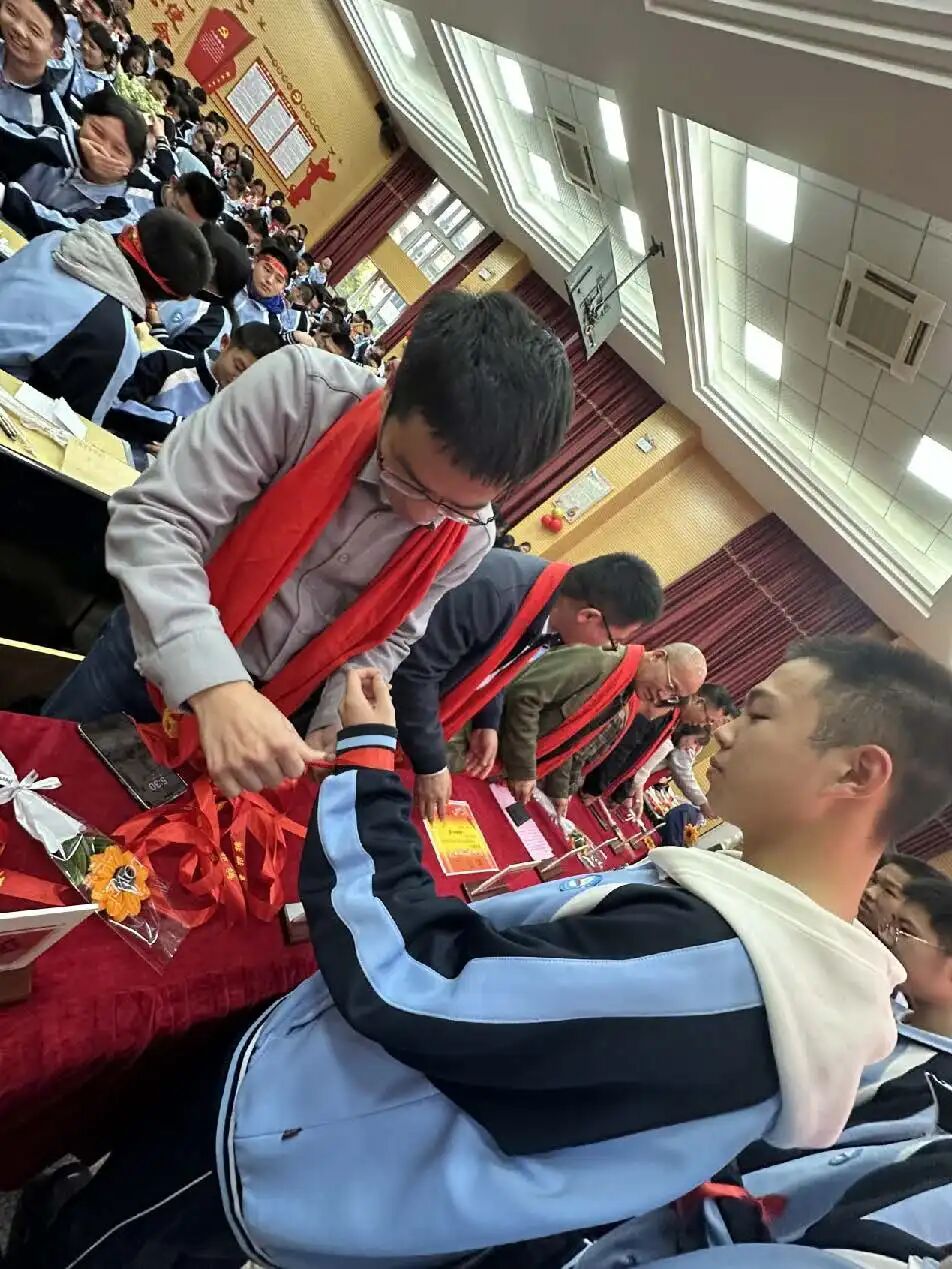翰墨飘香育桃李,丝带传情送祝福。红色,彰显热烈与奔放;红色,预示幸运与吉祥。同学们互相为彼此系上红丝带,送去对同窗挚友最真切的鼓励与关怀。