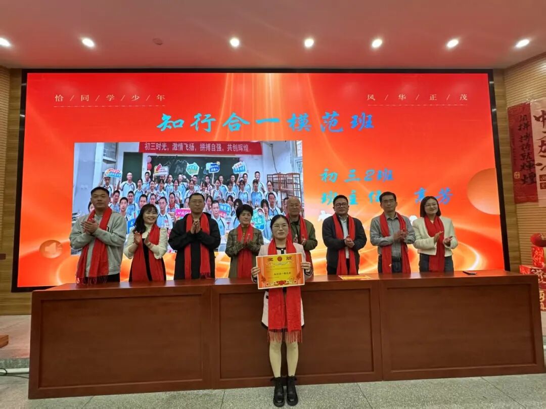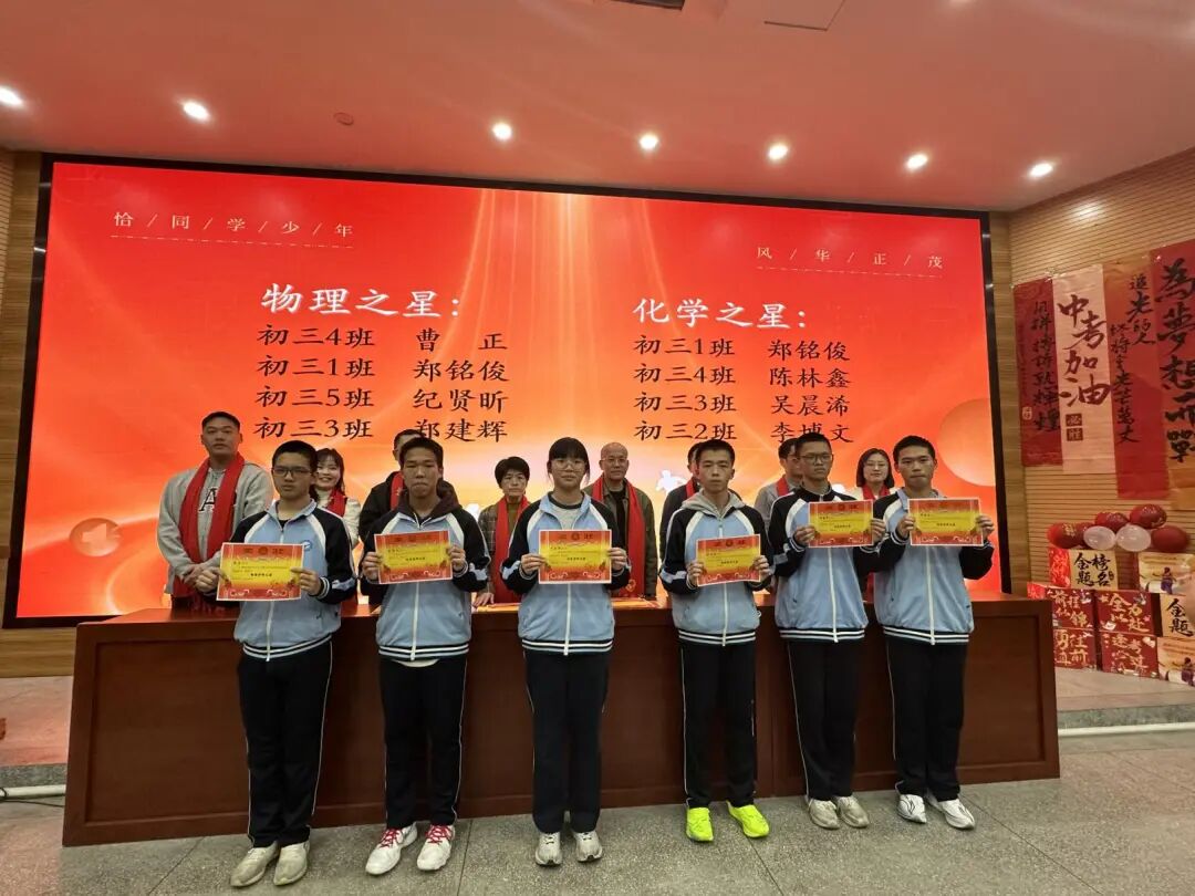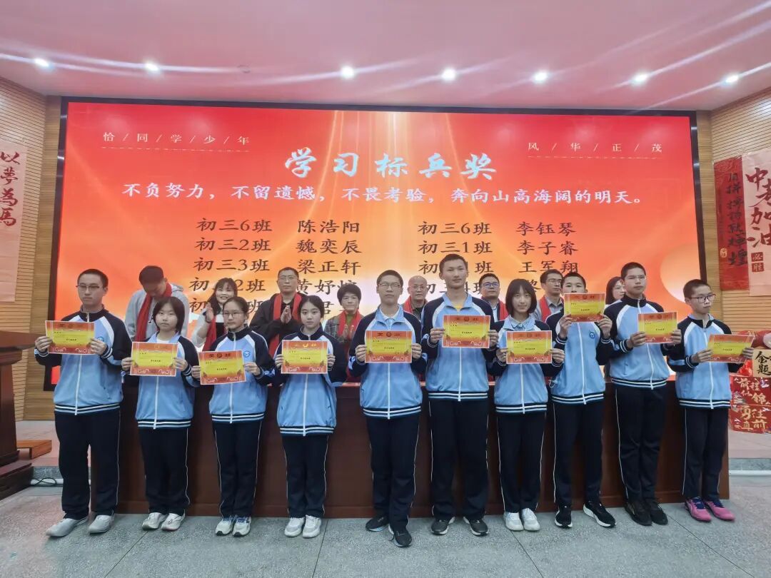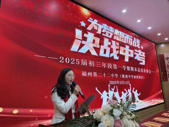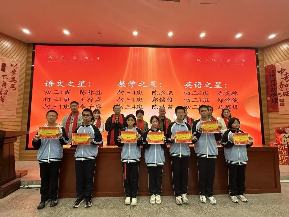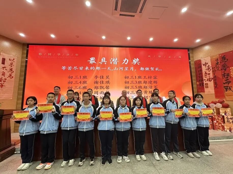 初三段长倪婷老师宣读了“全能六边形战士”“学习标兵奖”“最具潜力奖”“飞速进步奖”“学科之星”等优秀个人及班集体的名单。这些同学用扎实的努力诠释了拼搏与奋进,激励着全体初三学子在未来的学习中以他们为榜样,向着知识的高峰奋勇攀登。