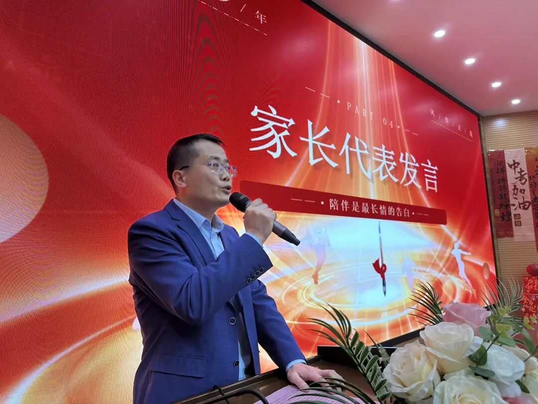 成长路上,父母永远是坚实的后盾,陪伴是最长情的告白。家长代表陈泓恺爸爸则为初三学子送上暖心鼓励与实用建议。中考只是人生的一座小山峰,分数决定不了人生,全力以赴的过程才是青春最宝贵的财富。最后,他祝愿所有同学都能考出好成绩,迈向心仪的学校。
