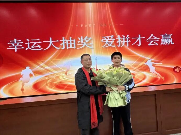 越努力,越幸运!只要心中充满激情,充满信念,任何困难都不能阻挡同学们飞跃的脚步,把父母的期盼,老师的信任,同学的内卷化成拼搏的力量,不留遗憾,用尽全力,好运将至!台上,校领导们为全场同学抽取幸运大奖并送上精心准备的礼物;台下,掌声热烈而经久,就像一场盛大的祝福,中考加油!