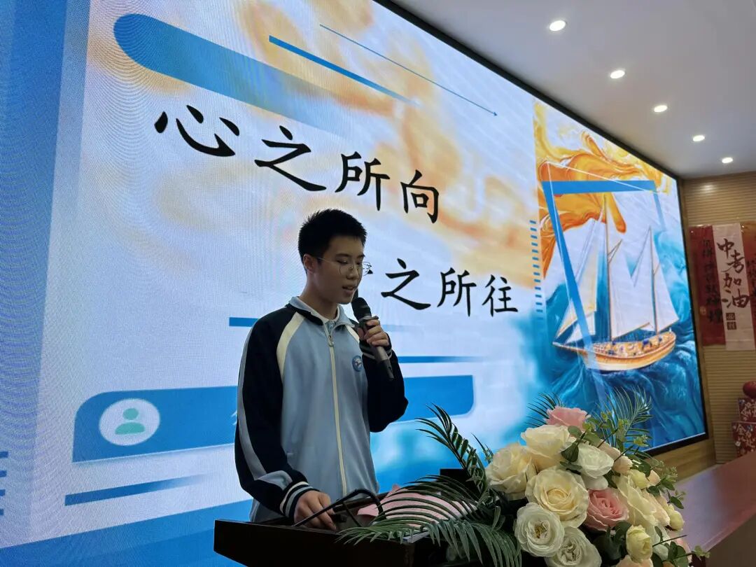 面对中考,要有时不我待的紧迫感和舍我其谁的使命感,从理想信念中汲取力量,心中有梦,脚下才有风。初三(4)班陈泓恺同学作为学生代表,从时间、习惯和心态三个方面与同学们分享了自身的学习感悟。最后,希望同学们能够在他的分享下有所收获,为自己的中考冲刺增添一份新的动力,跨越山海奋力奔跑。