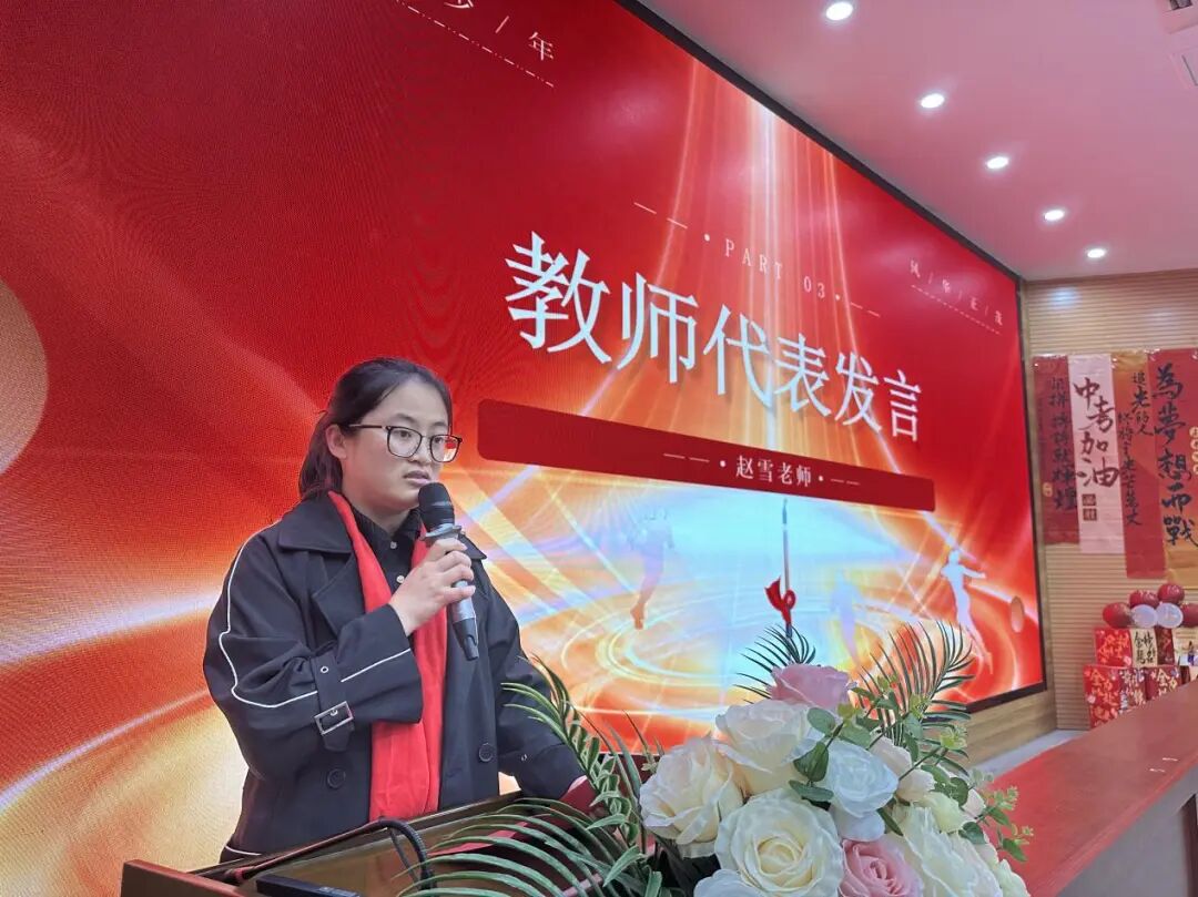 三尺讲台育桃李,百日征程伴君行!赵雪老师目光坚定,言辞恳切,激励同学们将中考视为磨砺自我的战场,勇敢直面每一道试题的挑战。她鼓励大家怀揣一往无前的勇气,秉持舍我其谁的霸气,凭借披荆斩棘的锐气,向着胜利勇往直前,去奋力摘取属于自己的荣耀之果。