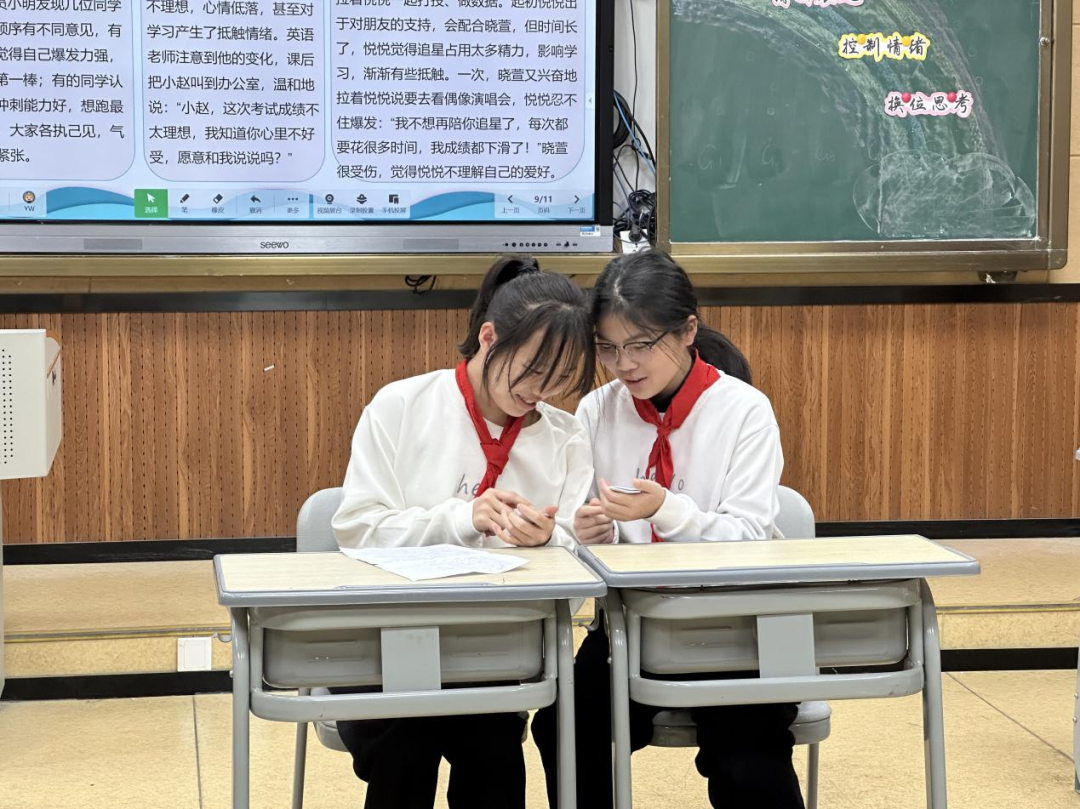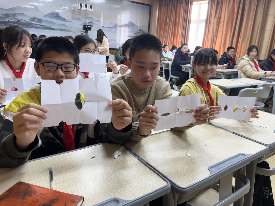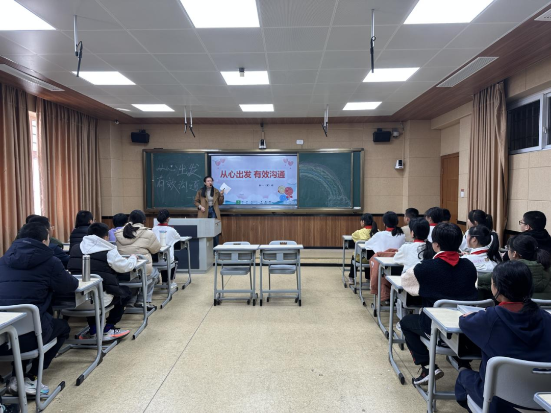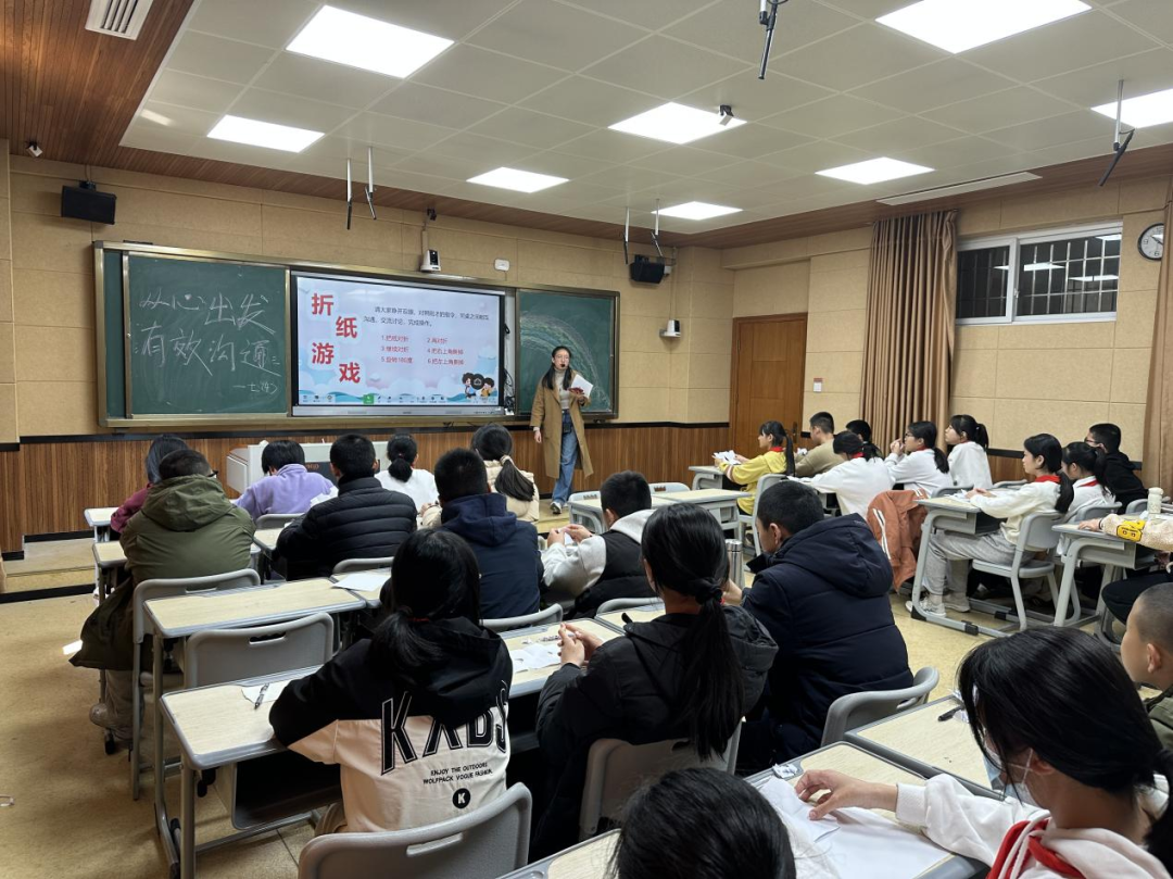 初一(4)班班主任念雨薇老师以“从心出发,有效沟通”为主题上了一堂生动精彩的德育公开课。念雨薇老师通过折纸环节、什么是沟通、情景演绎、沟通的重要性、沟通技巧讲解、情景模拟如何沟通、沟通秘籍制作七个环节帮助学生认识到沟通的重要性,通过活动增强班级凝聚力,促进学生之间的理解与合作,引导学生学会处理沟通中的冲突与误解。