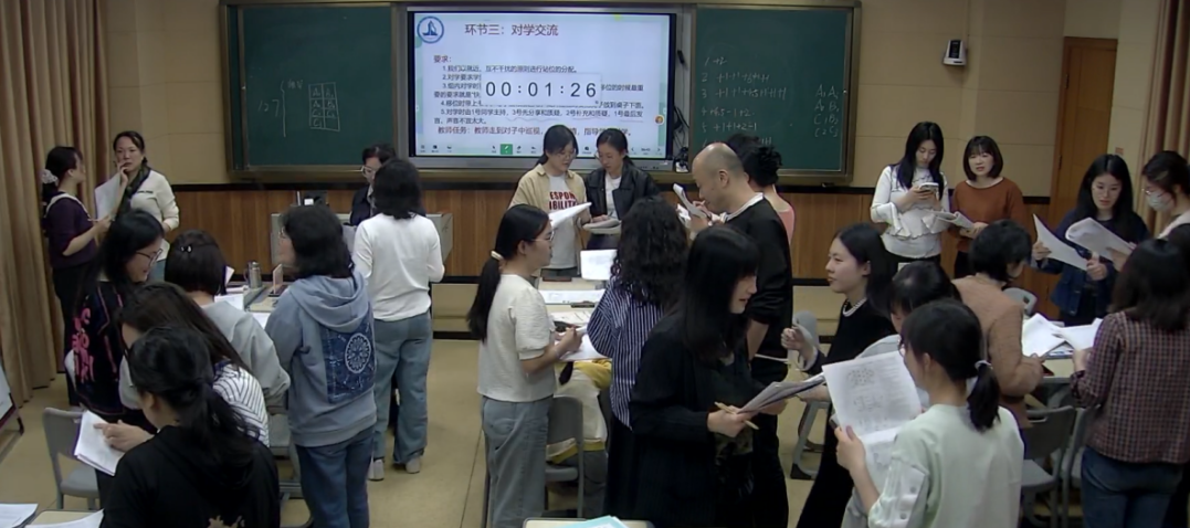 在整个培训过程中,兰天老师适时引导,针对在实践中可能遇到的问题,如 “异质分组中如何避免优秀学生大包大揽”、“分组后各组水平悬殊如何及时调整”等问题,组织大家共同探讨解决方案。教师们各抒己见,有的分享过往教学中的成功经验,有的从理论层面提出创新思路。模拟课堂里,不同 “角色” 间的思维激烈碰撞,演绎出别样的精彩课堂。