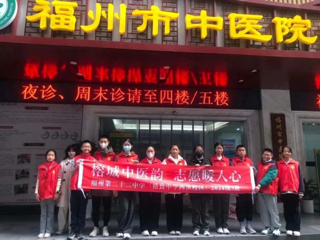 在大力弘扬“奉献、友爱、互助、进步”志愿精神的引领下,我校初一 3班的同学们奔赴福州市中医院,积极投身于“榕城中医韵,志愿暖人心”志愿服务活动之中。此次活动意义非凡,一方面旨在助力我校学生深度探寻中医文化的奥秘,切实增强他们的社会实践能力;另一方面则是为福州市中医院提供有力的支持与帮助,将温暖与关怀传递给每一位前来就医的患者,进而广泛弘扬志愿服务精神以及中医传统文化。