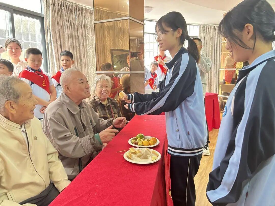 为弘扬中华民族敬老爱老的传统美德,营造尊老敬老的良好风尚,我校初二(1)班的同学前往福州榕供养老服务开展“爱满养老院,暖心志愿行”主题志愿活动,展现了当代青少年的风采和担当。