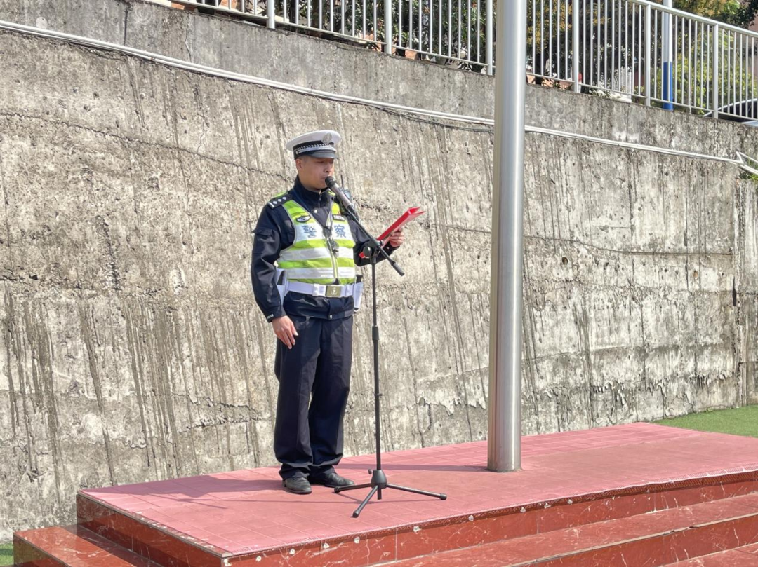 杨桥中队潘洪铨警官在国旗下讲话中希望同学们都能将骑行安全牢记心间,不仅自己严格遵守规定,还要当一个“安全小卫士”,把这些知识传播给身边的小伙伴、家人,让我们一起营造一个安全有序的出行环境,在平安的道路上茁壮成长!