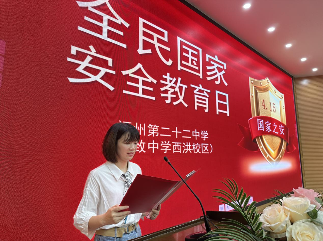 在周一的升旗仪式上,德育处主任陈晓霞进行了关于全民国家安全教育日的国旗下讲话,陈晓霞老师通过生动的案例深入浅出地阐述了国家安全的重要性,号召全体同学牢固树立总体国家安全观,从自身做起,从点滴小事做起,积极践行总体国家安全观,为维护国家安全贡献自己的力量。