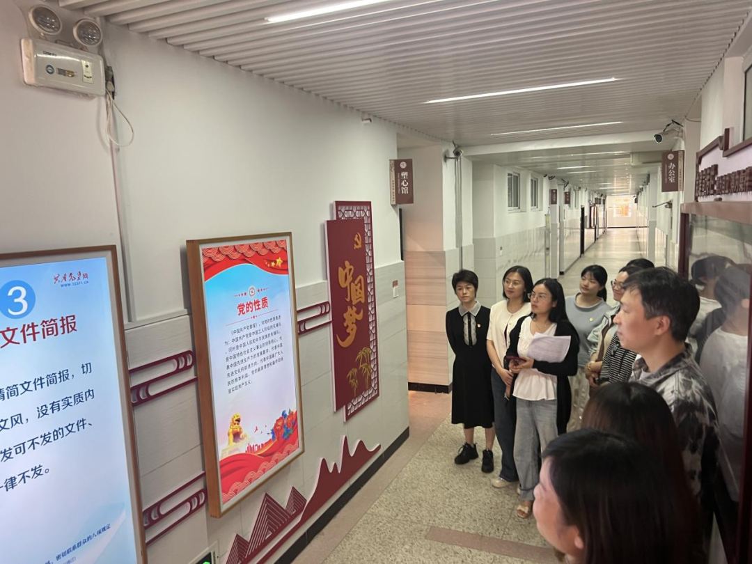 随后,党员教师们走进塑心馆。在 “智慧党建” 展示区,党员教师们回顾了中国共产党的发展历程,并将这些理论与中央八项规定精神紧密联系起来。党员们深刻认识到,中央八项规定精神是全面从严治党的重要举措,与党的先进理论一脉相承,是保持党的先进性和纯洁性的必然要求。