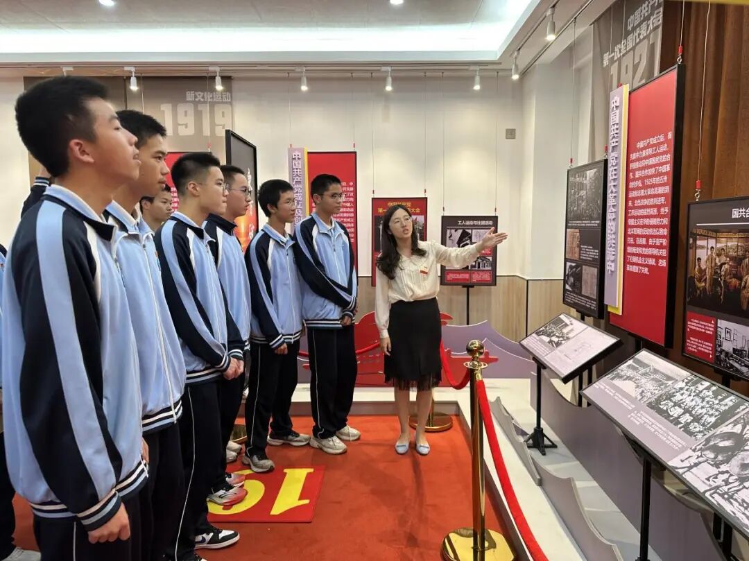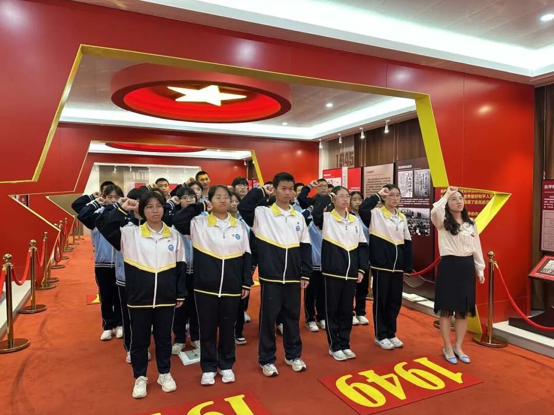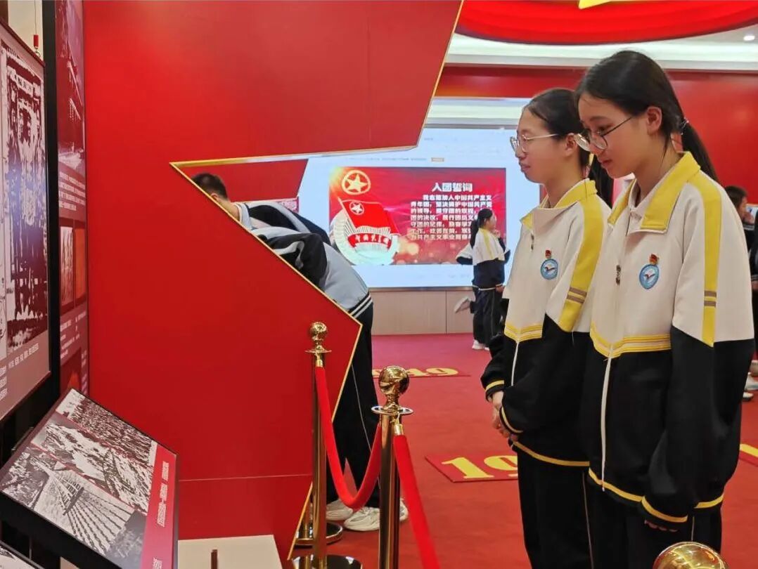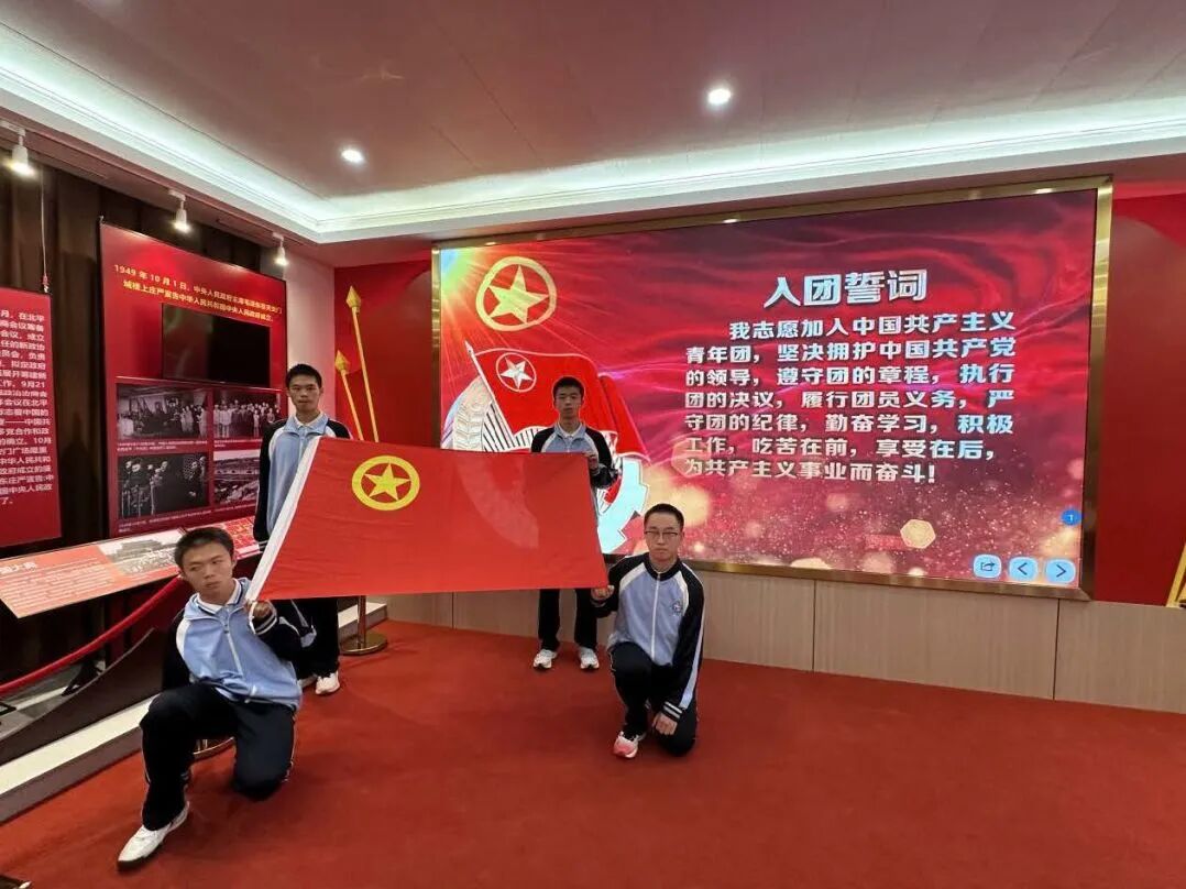 座谈会结束后,师生们一同前往学校党建教育馆进行参观学习。全体师生整齐列队,面向鲜艳的团旗,庄严地举起右拳,重温入团誓词。“我志愿加入中国共产主义青年团,坚决拥护中国共产党的领导,遵守团的章程……”铿锵有力的誓言在党建馆内回荡,表达了团员师生们对共青团的忠诚和为共产主义事业奋斗终身的决心。