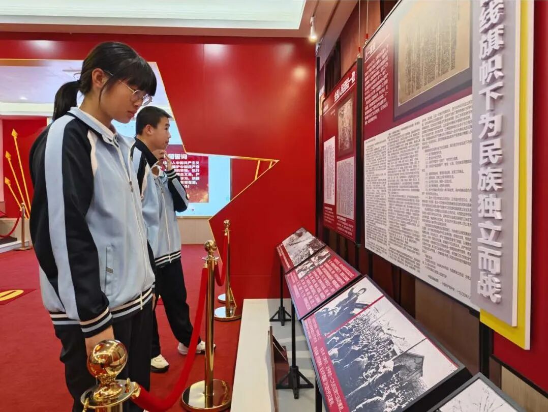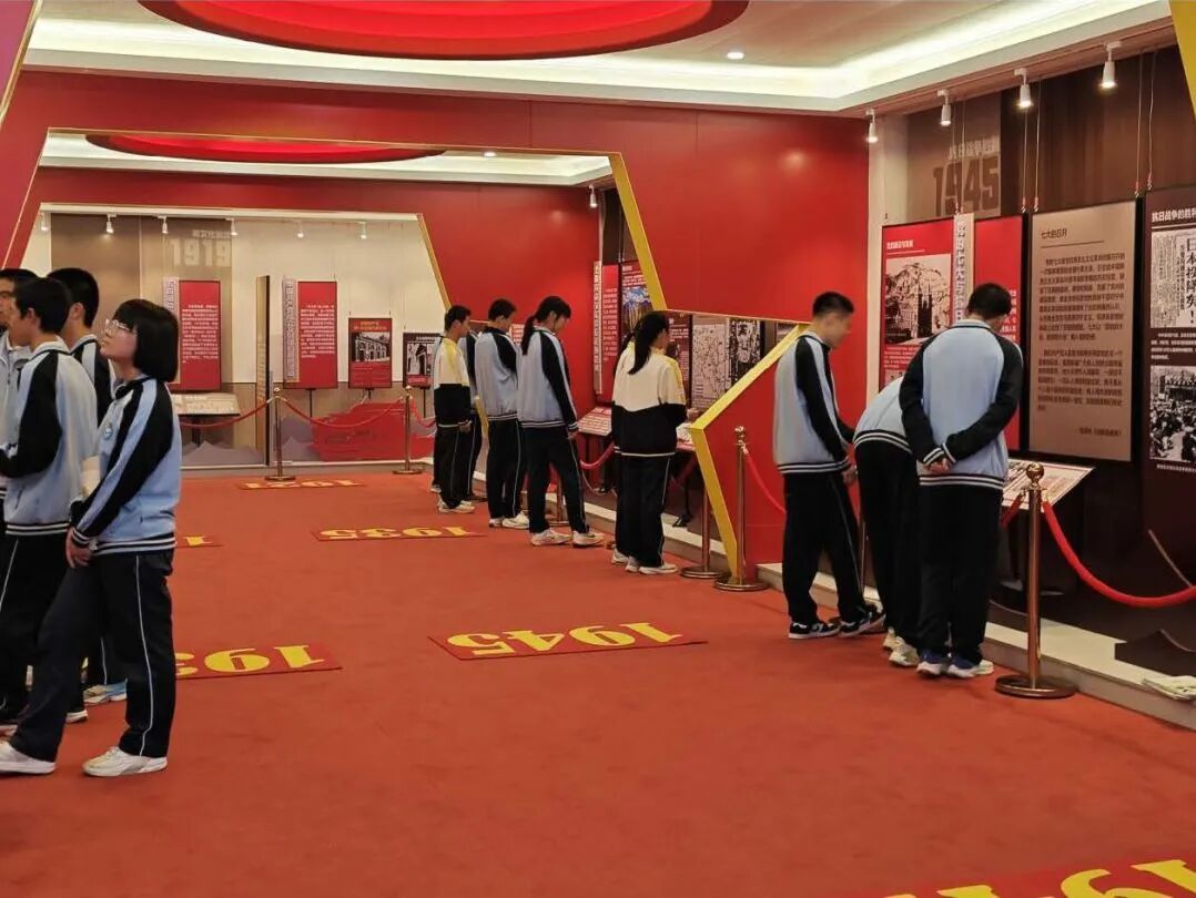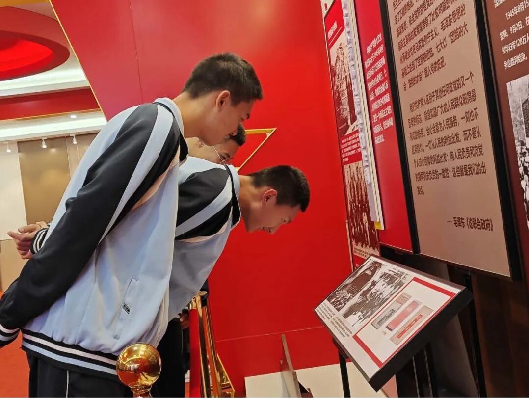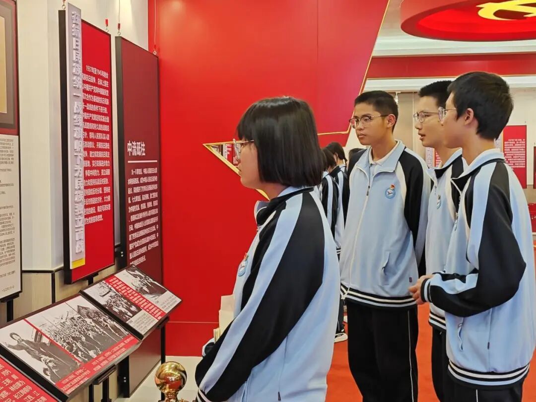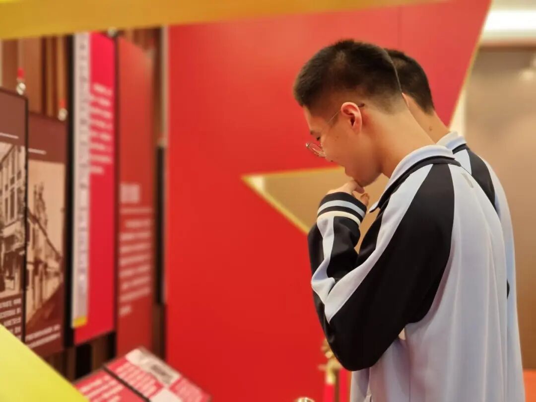 座谈会结束后,师生们一同前往学校党建教育馆进行参观学习。全体师生整齐列队,面向鲜艳的团旗,庄严地举起右拳,重温入团誓词。“我志愿加入中国共产主义青年团,坚决拥护中国共产党的领导,遵守团的章程……”铿锵有力的誓言在党建馆内回荡,表达了团员师生们对共青团的忠诚和为共产主义事业奋斗终身的决心。