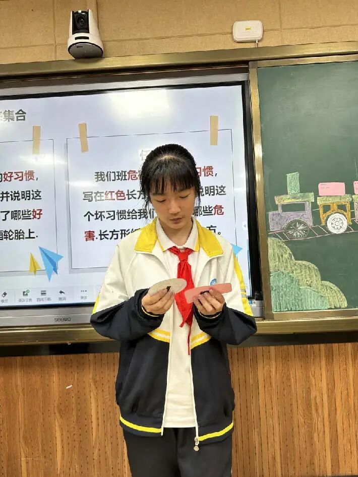 各位听课的班主任纷纷提出了自己的意见和建议。陈虹老师这节课以习惯为主线,结合校园生活案例,内容贴近学生日常,并且通过对比直观呈现。习惯好列车的创意板书贯穿全程,符号化呈现好习惯与坏习惯形象直观,可增强记忆点。