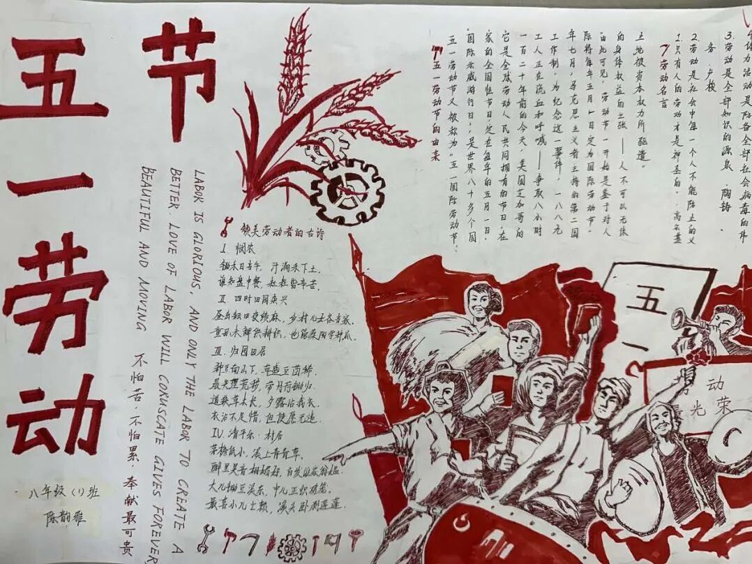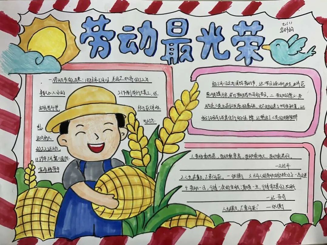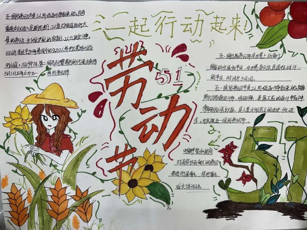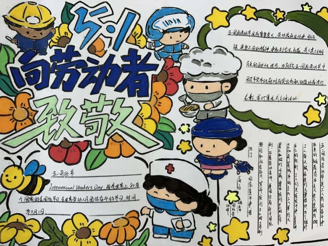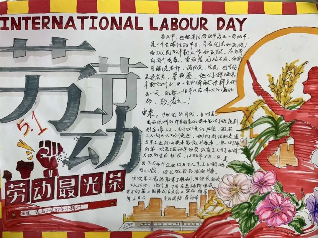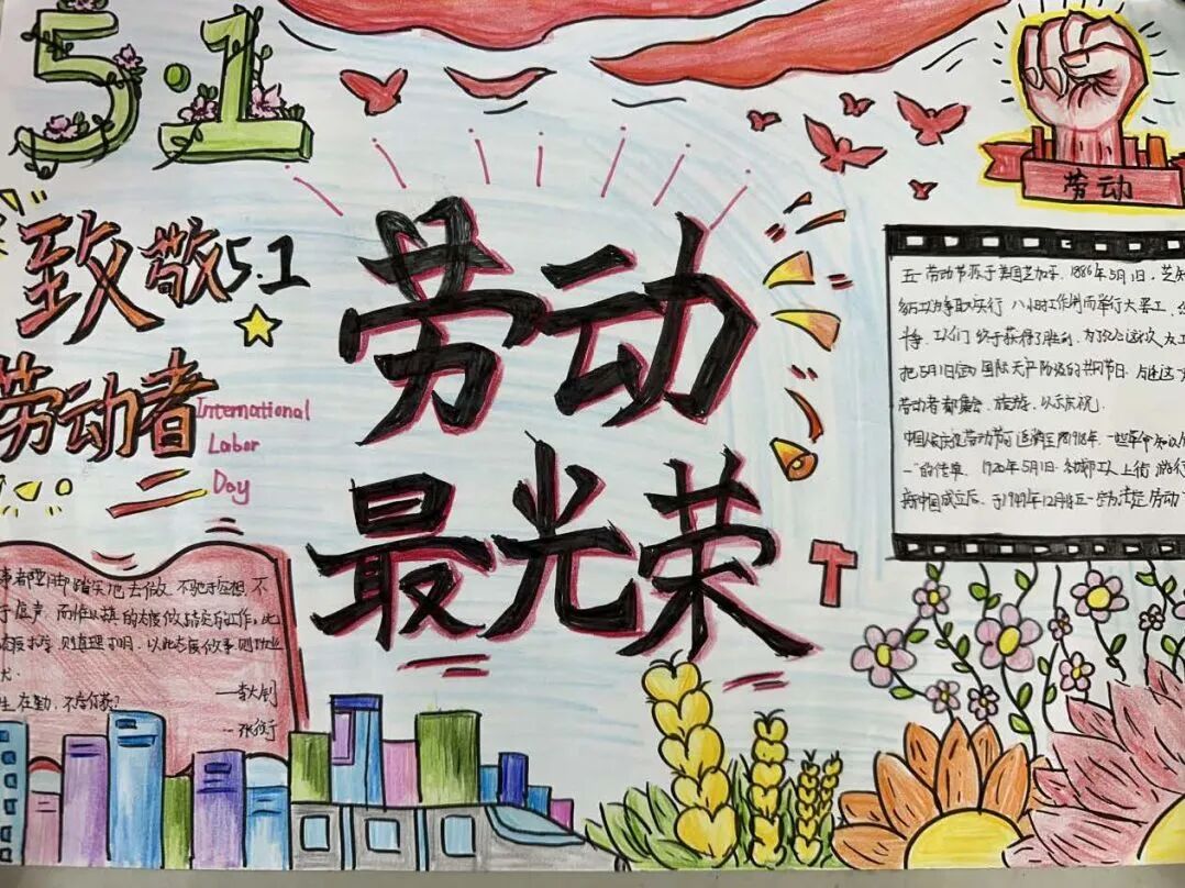 为了进一步弘扬劳动精神,学校组织了劳动节手抄报制作活动。同学们发挥自己的想象力和创造力,用五彩的画笔描绘出劳动的美丽画卷。