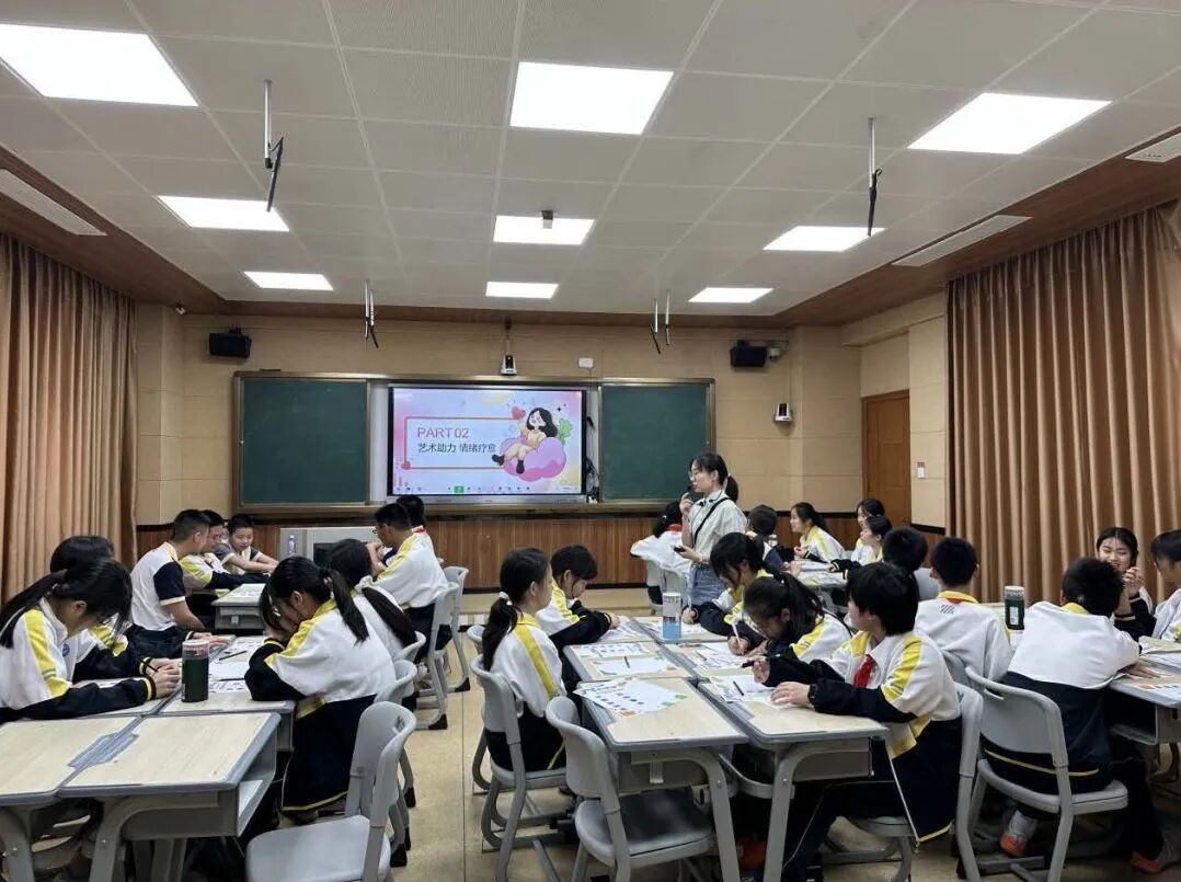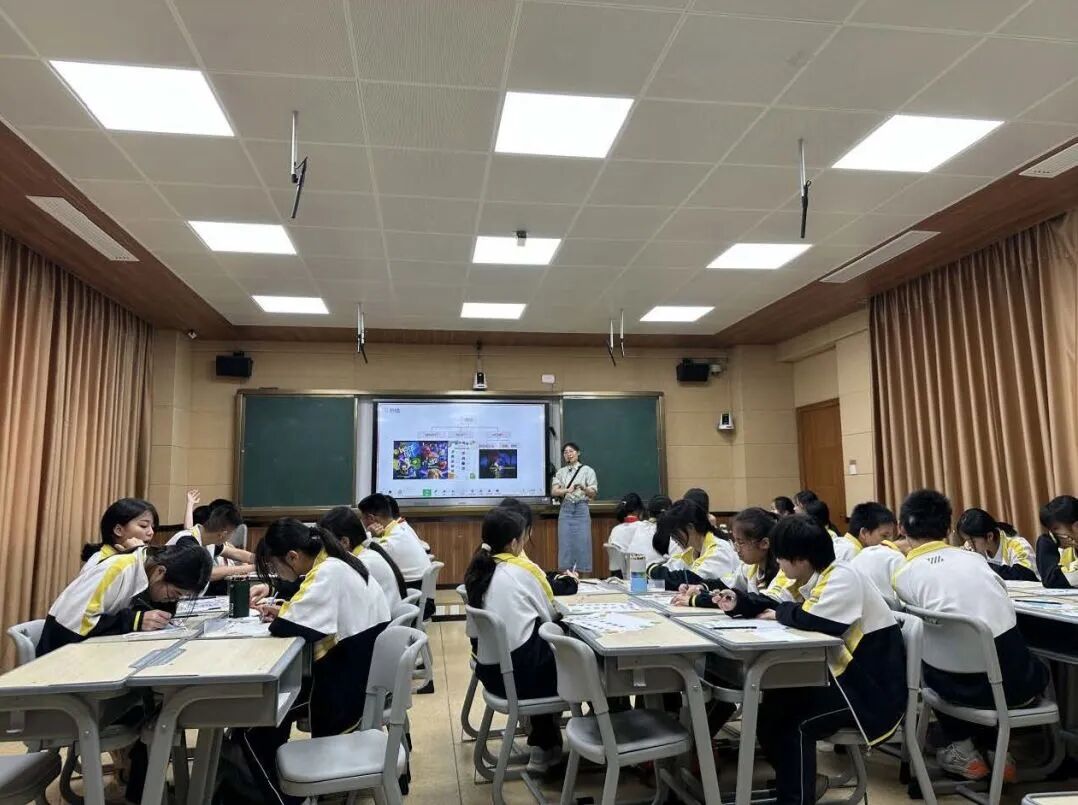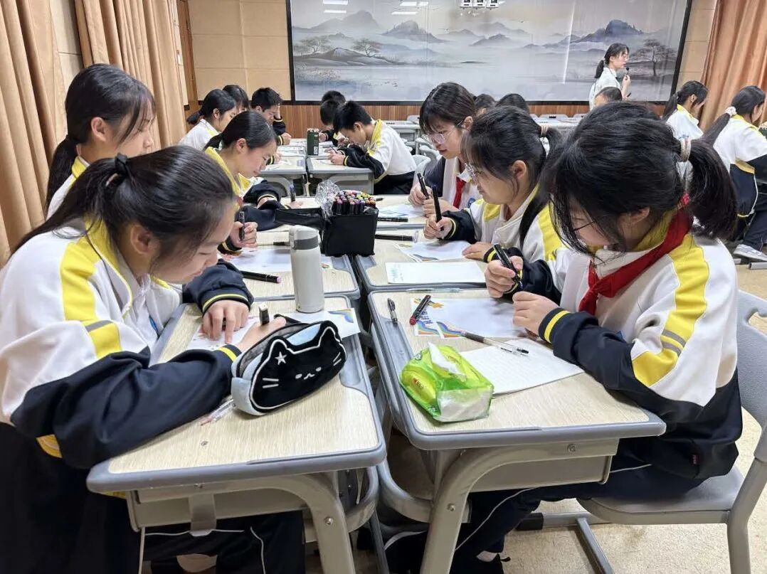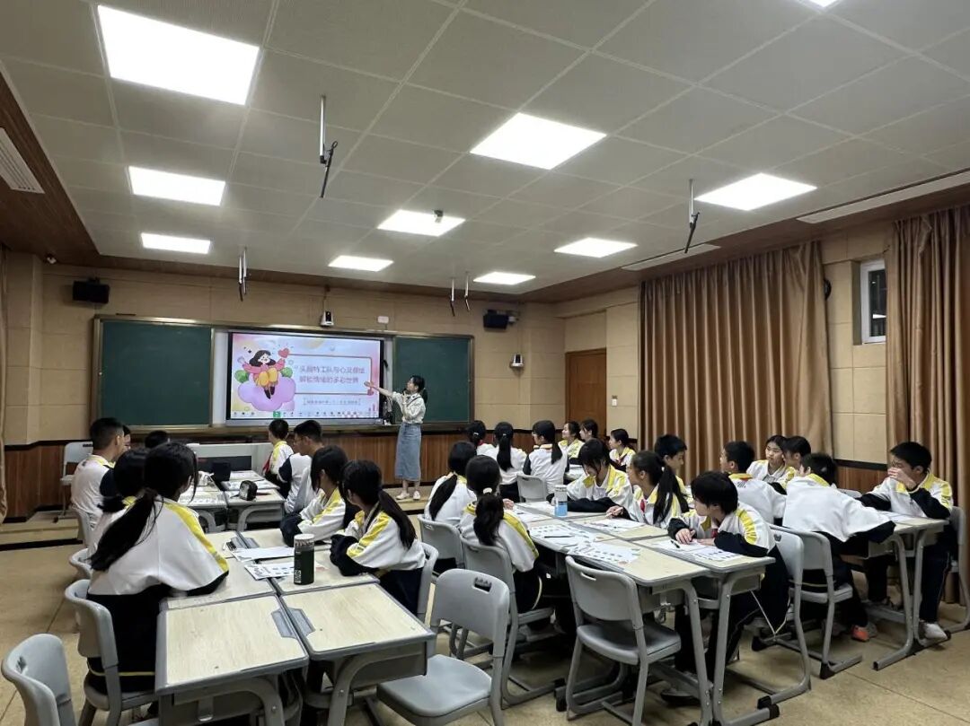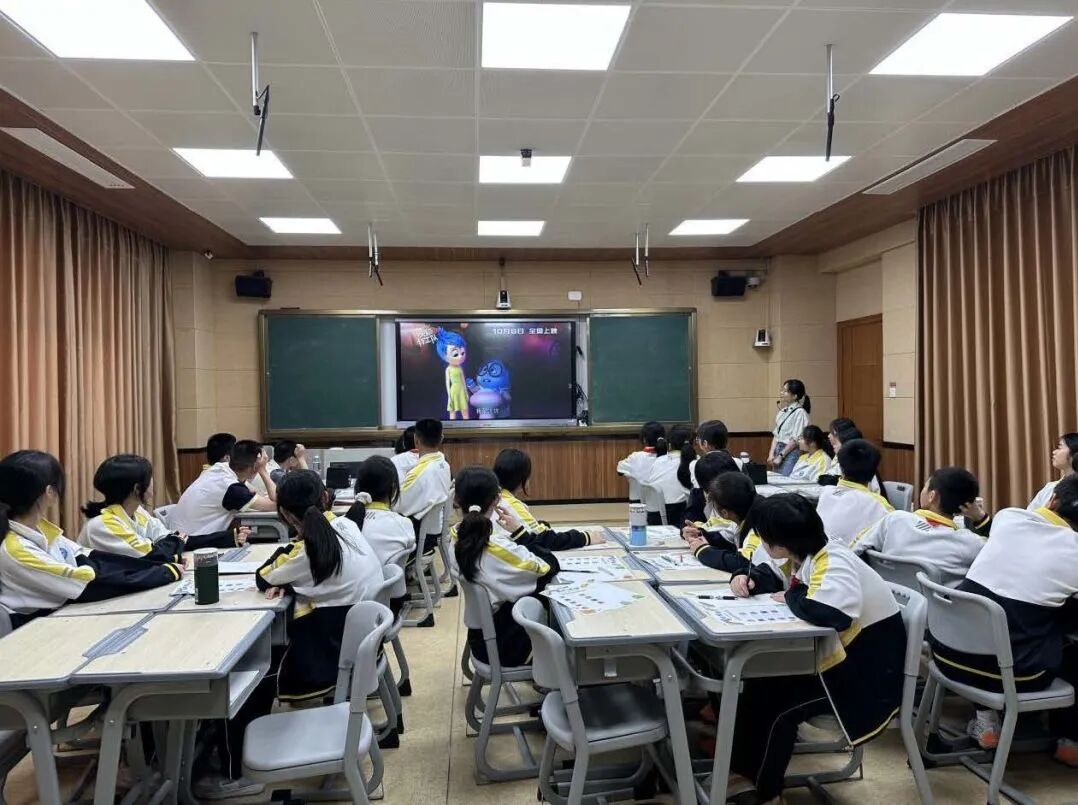 初二(2)班班主任徐如意老师以“头脑特工队与心灵意绘:解锁情绪的多彩世界”为主题上了一堂生动精彩的德育公开课。徐如意老师通过《头脑特工队》解析情绪、艺术助力情绪疗愈、《头脑特工队》我与情绪、总结四个部分让同学们正确认识各种情绪,引导同学们成为情绪的主导者。