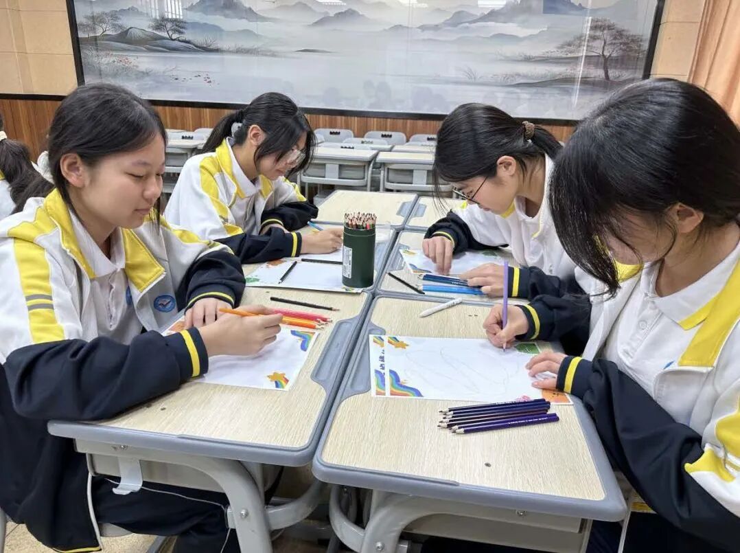 各位听课的班主任纷纷提出了自己的意见和建议。徐如意老师这堂课以《头脑特工队》系列电影为脉络,思路清晰,富有趣味,课件色彩丰富,通过对图上内容讨论、情绪解析、单人剧表演、实操减压环节,形式丰富,充分激发学生兴趣和参与度。