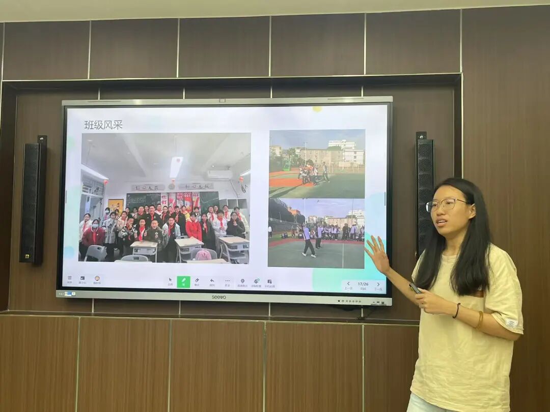 班主任代表念雨薇老师通过展示班级活动照片、学生成长记录等材料,全方位呈现了班级管理的成果。同时,念老师也坦诚地提出了当前班级管理中存在的问题,并从班级管理优化、教学质量提升、学生稳定发展三方面规划了后续工作。她强调,要进一步加强家校协同合作,定期与家长沟通学生的学习和生活情况,形成家校教育合力;注重班级管理的细节,关注每一位学生的情绪变化和心理需求,及时给予关心和帮助;组织多样化的班级活动,增强班级的凝聚力和向心力,营造良好的学习氛围。