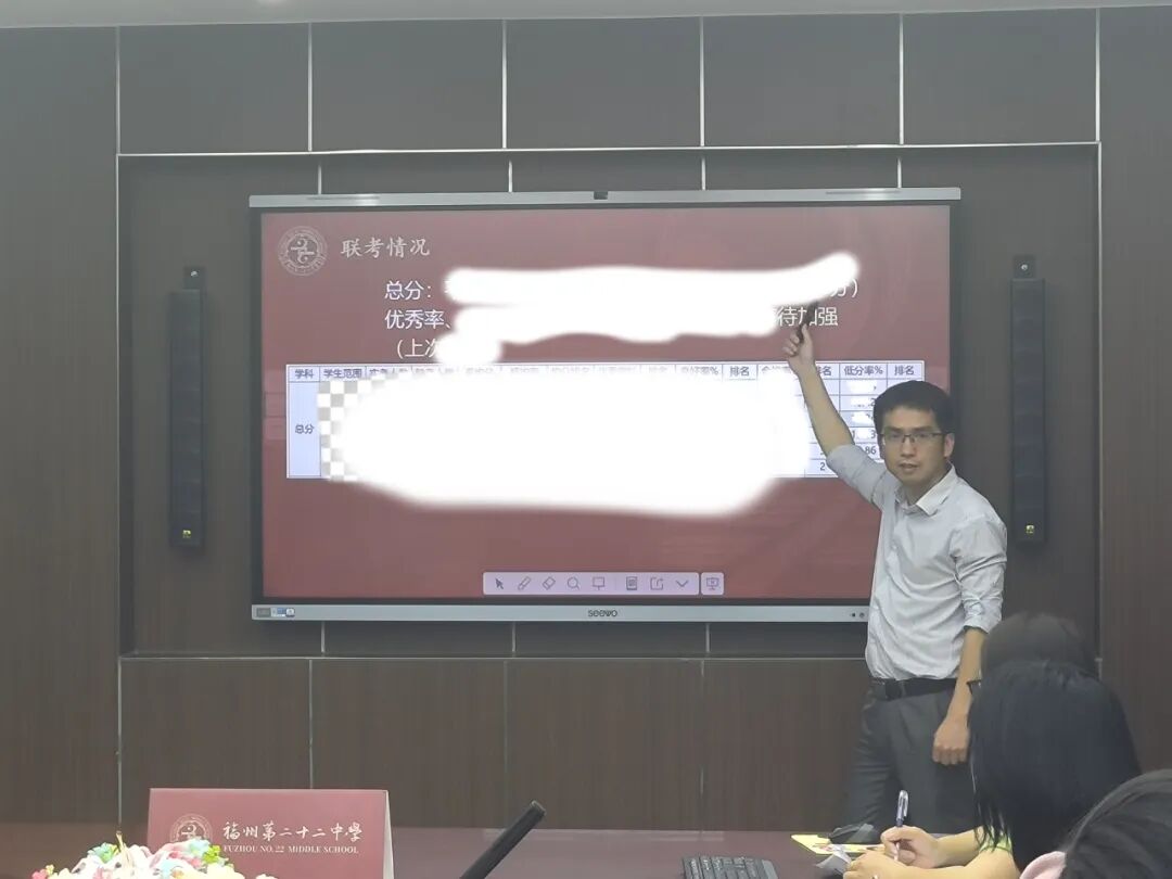 会议伊始,教务处主任黄照以详实数据为支撑,围绕本次考试展开系统性分析。他深入各学科,从平均分、优秀率、及格率等维度剖析成绩,细致的数据展示让教师们对学生的整体学习情况有了清晰的认识。同时,教务处结合数据分析,提出了年段教学工作的重点和目标,为后续教学指明了方向,助力教师们精准发力,提升教学效果。