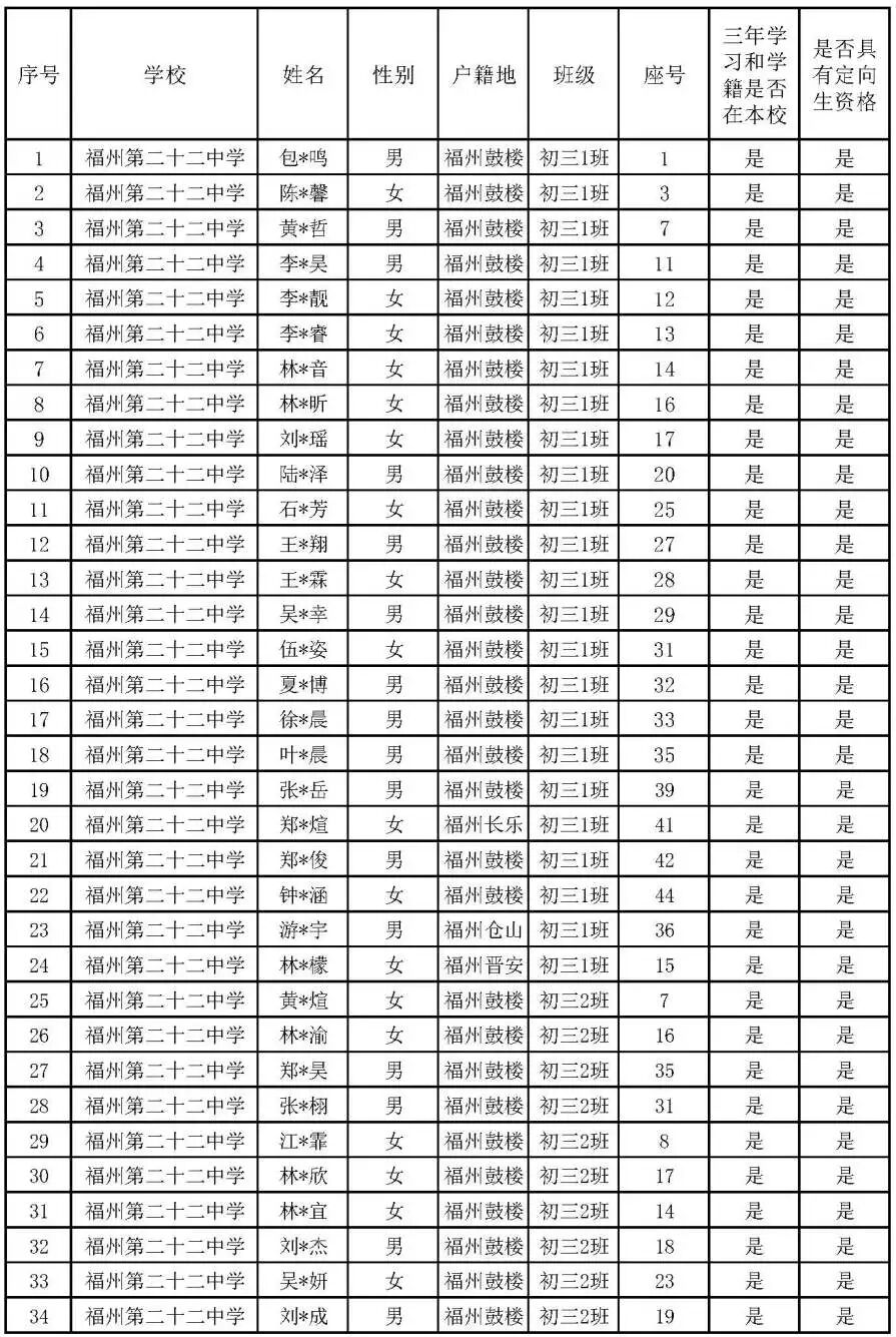 根据榕中招〔2025〕7号关于《福州市中招办关于做好2025年福州市优质普高定向生资格认定工作的通知》等文件精神。现将2025届符合福州市优质普高定向生资格的学生名单进行公示。
