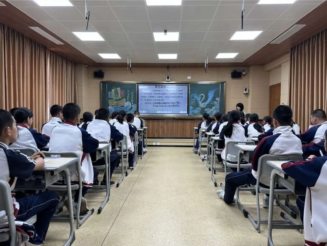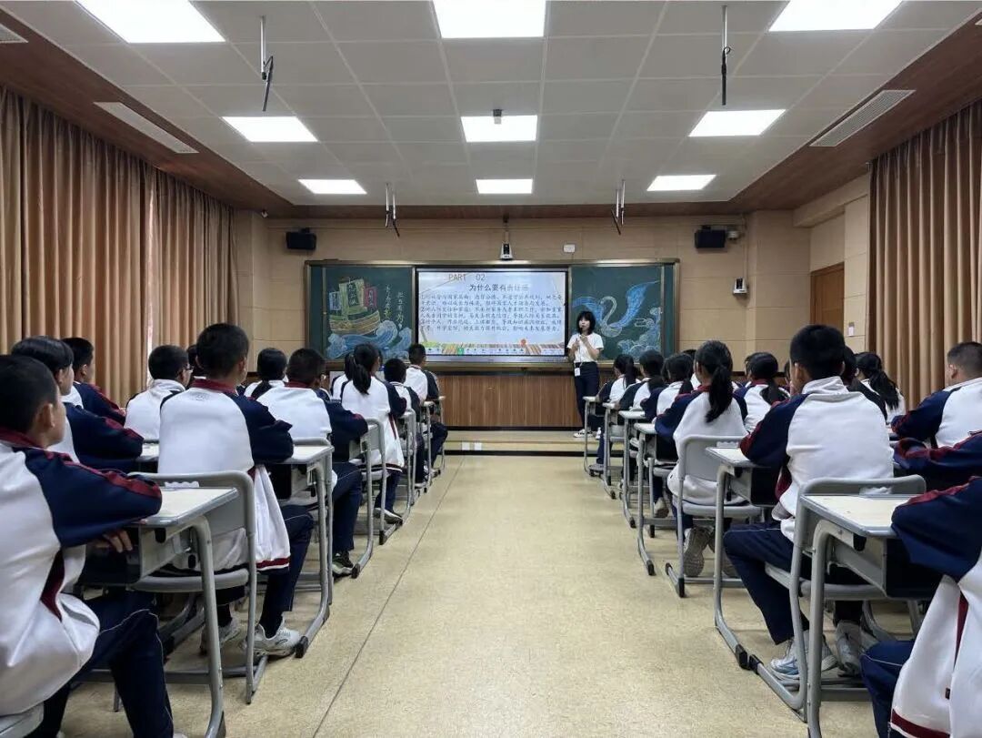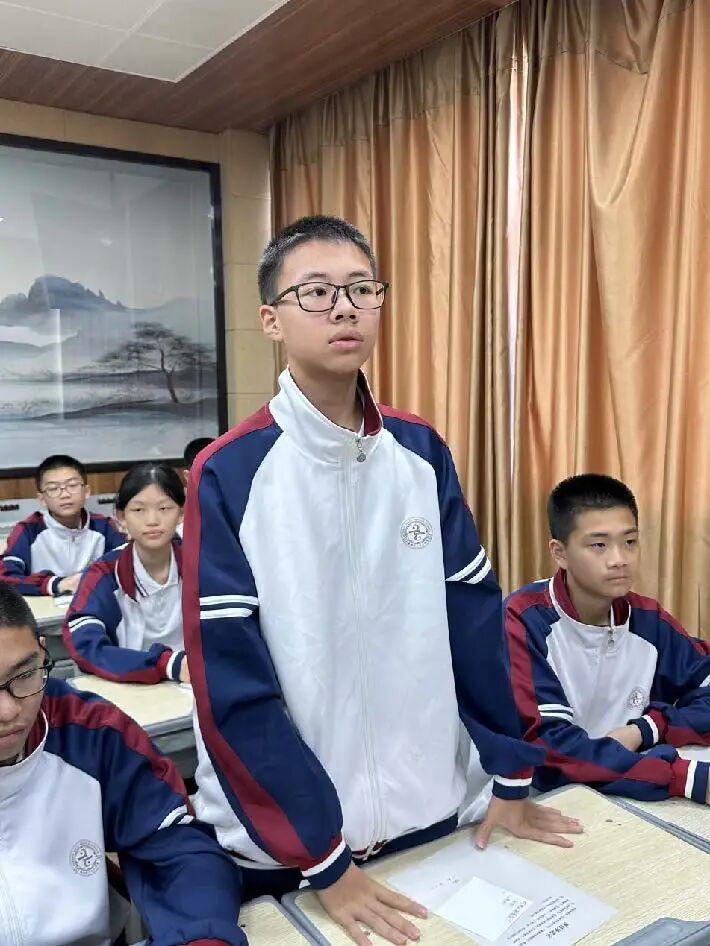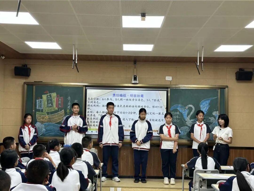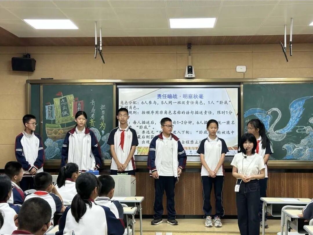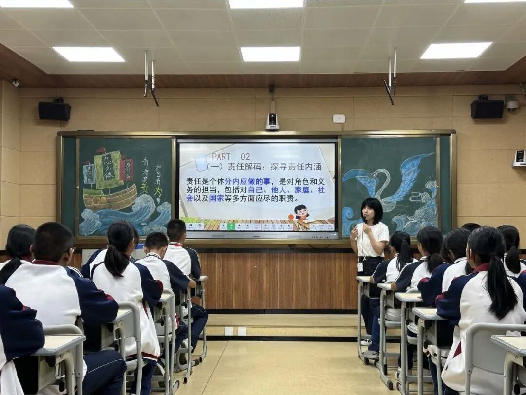 初一(3)班班主任周炳鑫老师以“青春有责,担当有为”为主题上了一堂生动精彩的德育公开课。周炳鑫老师通过“游戏破冰,感知责任——真心话版大风吹”、“核心探究:多维剖析,明晰责任”、“深化体验:互动实践,强化认知”、“总结升华:诵读经典,传承使命”四个环节激发学生对责任感的积极情感,培养他们主动承担责任的意识,树立对自己、对他人、对社会的责任感,形成正确的价值观和道德观。