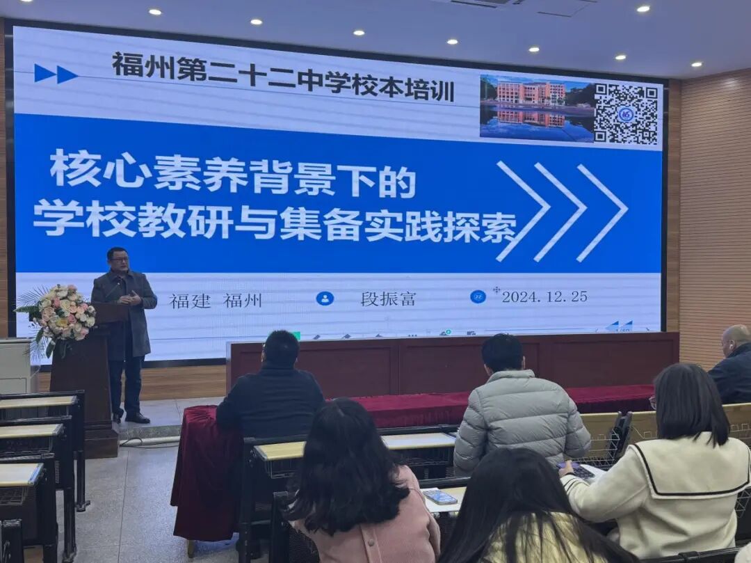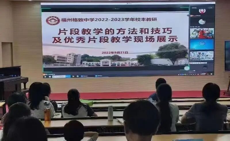 福州格致中学教育集团组织我校教师形成“以课带研、以研促教”的教研与教学机制,教师积极参与到省市级课题研究中,以新课标为统领,聚焦学科核心素养。为促进教师专业成长,我校开设多场讲座,开展形式多样的教研活动。如邀请福建省特级教师郭榕进为教师带来《与优秀教师零距离》的讲座,启迪青年教师为自己的职业生涯规划做好顶层设计;邀请福州第十六中学段振富老师(福州市学科带头人、福州市教学名师培养对象)为我校教师作《核心素养背景下的学校教研与集备实践探索》讲座,指导我校教师教研集备的方向以及如何建立和实施主题教研集备活动等。为深入推进课堂教学改革,提升课堂教学质量,我校邀请福州滨江中学兰天老师开展以《“127”高效课堂模式》为主题的专题分享活动,同时学校开展“信息技术与学科教学深度融合”项目,促使信息技术与教育教学融合取得新突破。目前学校正以部分班级为试点,研究分组教学新模式,实现分组教学模式常态化,实现课堂教学高效化。