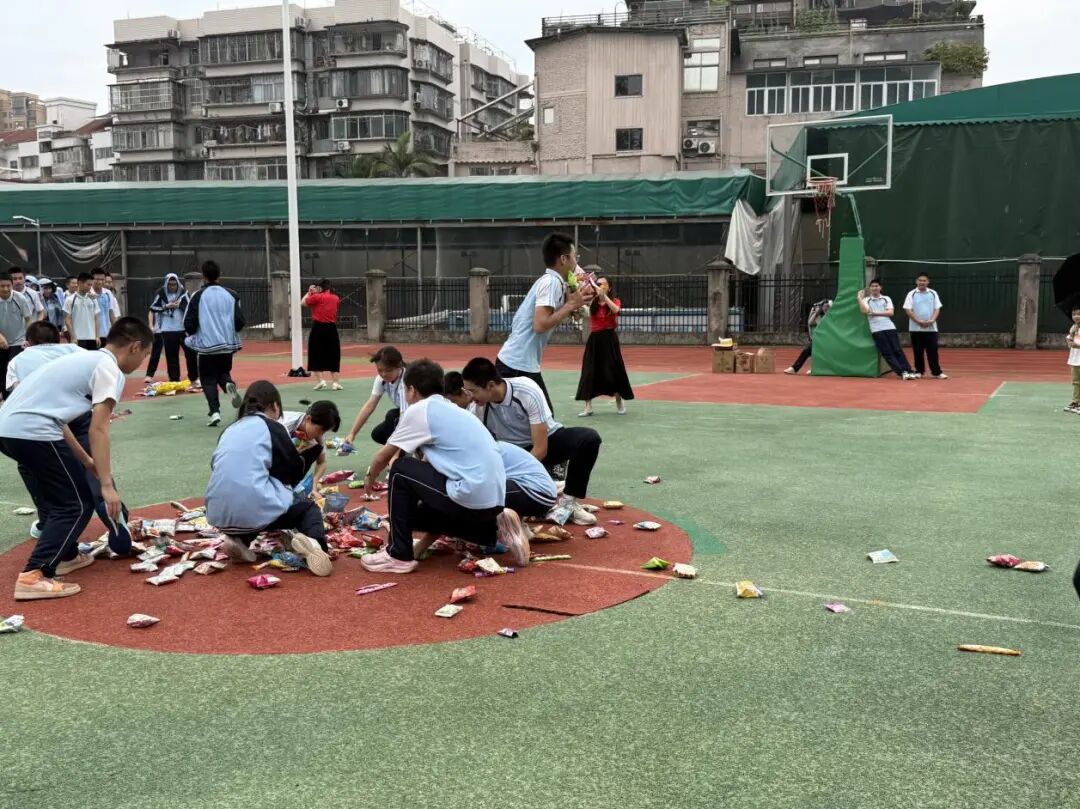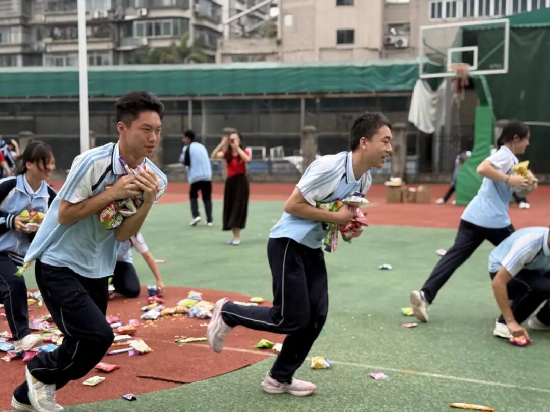 为了缓解同学们的学习压力,学校组织了“我们一起抢零食”心理团辅活动。活动现场气氛热烈,同学们纷纷使出浑身解数,在欢声笑语中抢到了自己喜欢的零食。