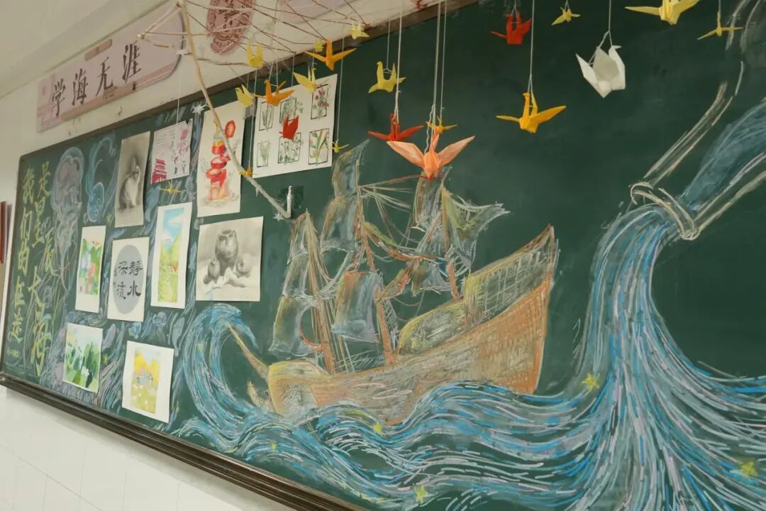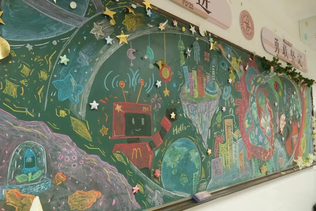 一墙一景一内涵,一班一品一特色。各班级以教室黑板、教室的角落、墙壁为展板展出班级作品,同学们都积极参与,充分发挥想象力共同创造了一个充满美好和创意的展览空间,为校园增添了绚丽色彩。