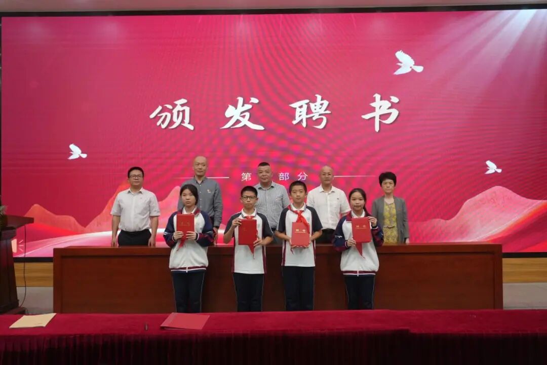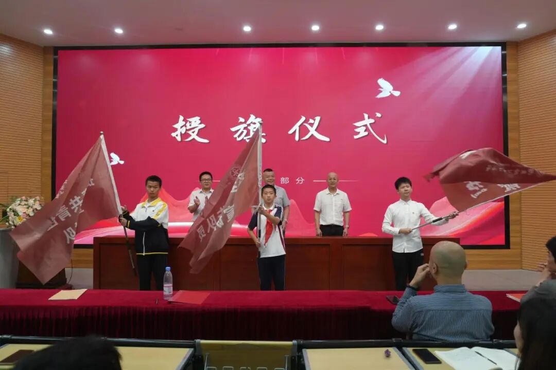 最后,何峰副校长将“逐梦少先队员宣讲队”的旗帜交到少先队员代表郑宇恒手中,那鲜艳的旗帜,承载着少年们对未来的憧憬,他们将用稚嫩而坚定的声音,传承红色基因。