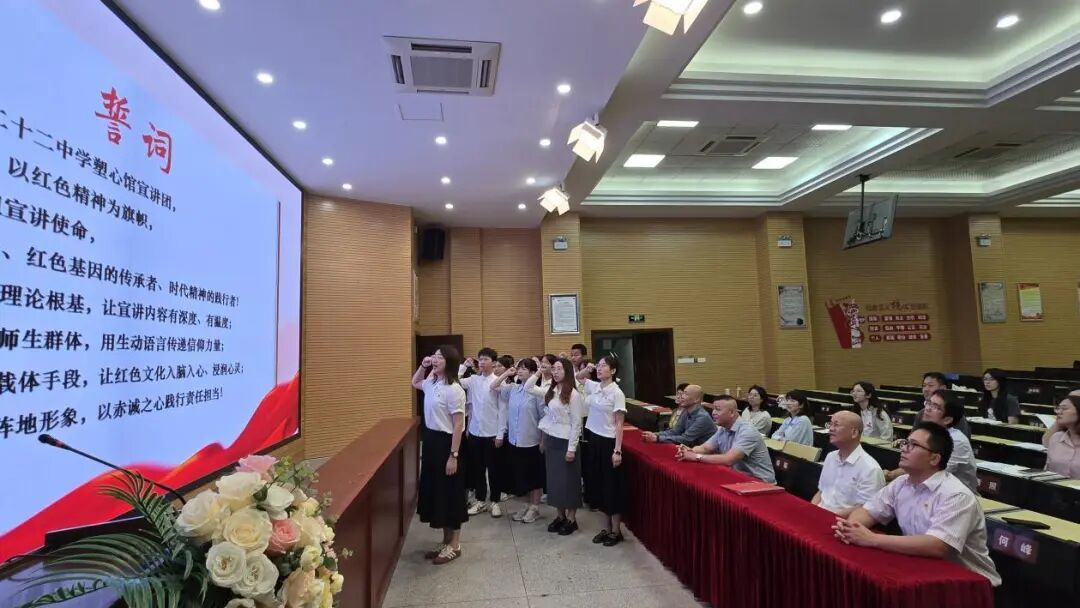 “我志愿成为塑心馆宣讲团成员,牢记党的历史,传承红色基因,践行初心使命……”在宣讲团成员何思璐老师的带领下,全体成员庄严宣誓。誓言铿锵有力,表达了宣讲团成员弘扬红色精神、做好党史宣讲的坚定决心。