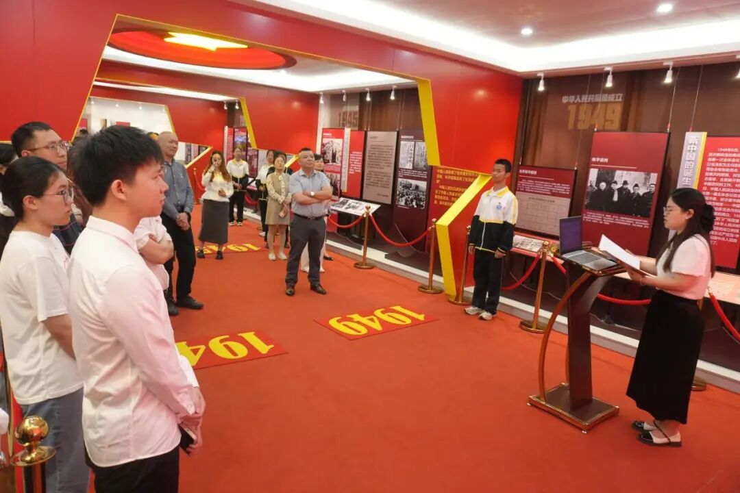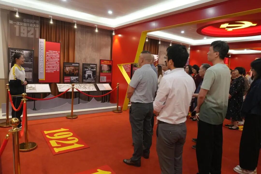 宣讲过程中,全体党员教师跟随宣讲员的讲解,时而驻足凝视史料,时而低声交流感悟,在沉浸式体验中深刻感受到党的百年奋斗历程和伟大精神。