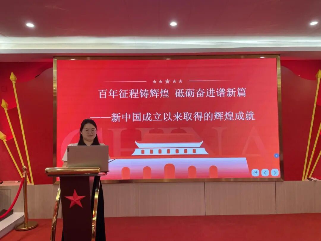 最后,宣讲团成员管青云老师着重从“改天换地:奠定社会主义基业(1949—1978)”“翻天覆地:改革开放书写中国奇迹(1978—2012)”“惊天动地:新时代擘画复兴蓝图(2012——至今)”三个时间维度介绍新中国成立后,中国共产党带领中国人民创造的令世界惊叹的辉煌成就。76年栉风沐雨,百余年春华秋实。昔日星星之火,今已成燎原之势。我们坚信,踏上新征程,在以习近平同志为核心的党中央坚强领导下,我们党必将团结带领亿万人民踔厉奋发、勇毅前行,将强国建设、民族复兴伟业不断推向前进。