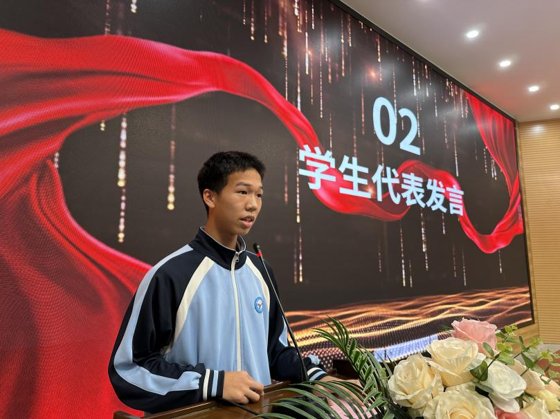 信念为帆,行动为桨。初三2班李博文同学作为优秀学生代表,以真挚的发言点燃全场。他结合自身备考经历,分享了如何合理时间规划和学习备考方法,以及保持积极心态的重要性。他的发言赢得了全场同学的热烈掌声,为同学们提供了切实可行的冲刺策略。