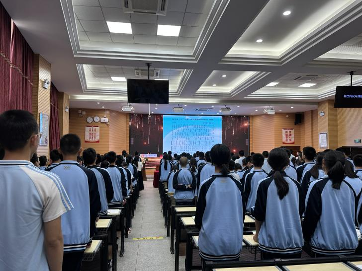 大会最后,何峰副校长代表学校向全体初三同学表示热烈的祝贺,对同学们在二检取得的进步给予高度肯定。他提出了对凌云级学子的期望,字字句句凝聚学校对学生的深切期盼与坚定支持,鼓励同学们把三年苦读的微光,酿成六月提笔的从容,那些披星戴月走过的路,终将繁花遍地,圆梦六月。