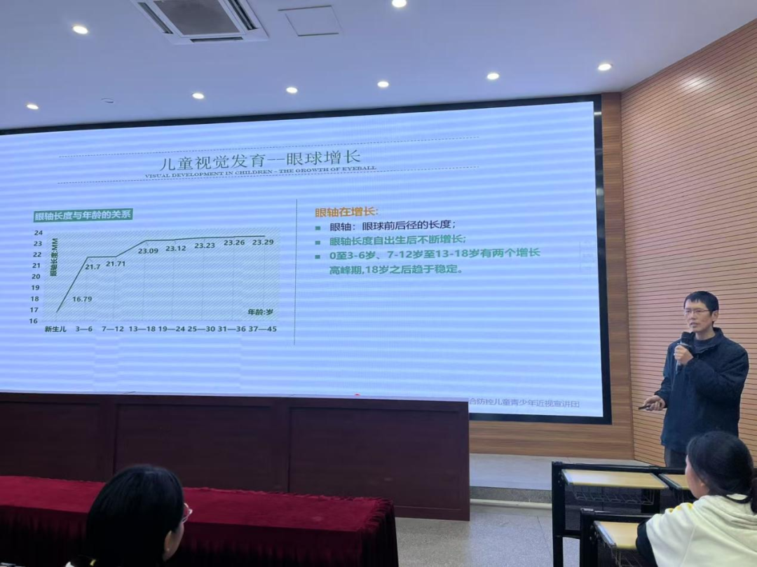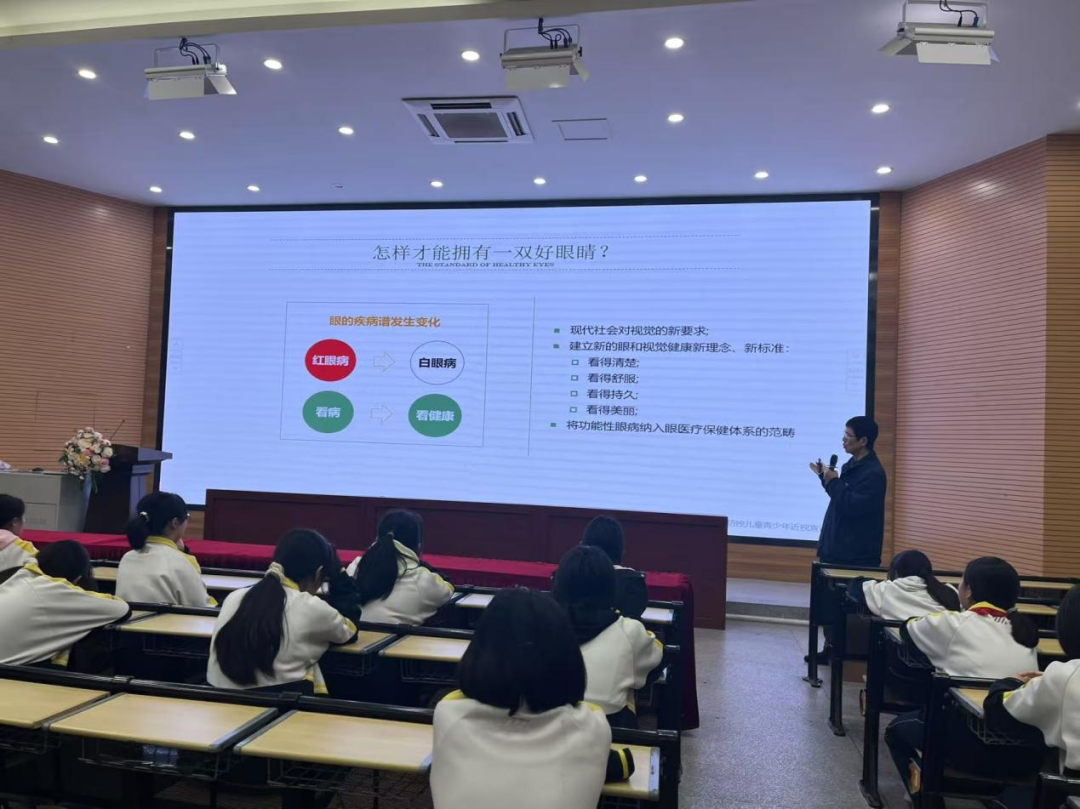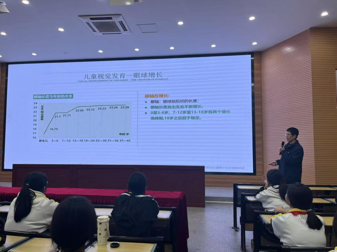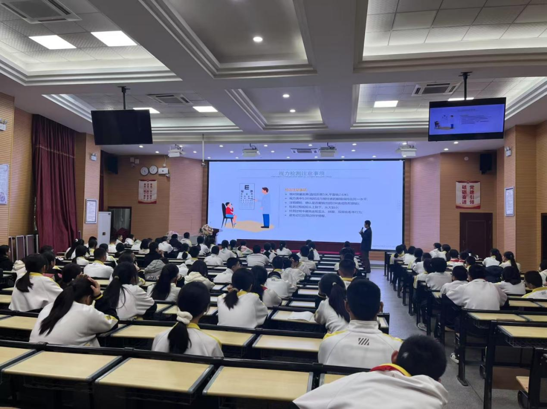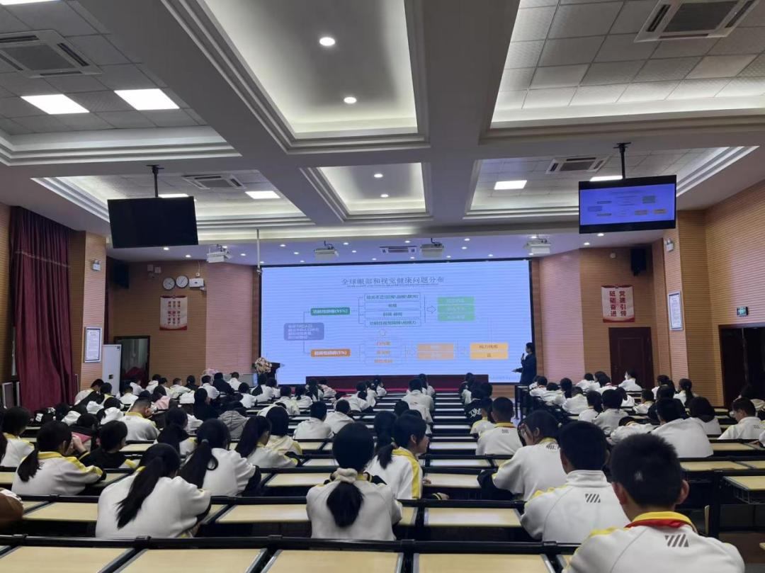 由福建省教育厅主办,福建医科大学医学技术与工程学院、福建省儿童青少年近视防控研究中心、福州市教育局承办,点点taptap官网(格致中学西洪校区)协办的近视防控宣传教育活动,在我校如火如荼地举行。此次活动邀请福建附属医科大学附属协和医院眼科主治医师薛洪华莅临我校和100多名学生进行面对面地宣讲。薛洪华主任通过PPT让同学们了解发生近视的原因、近视的危害、视力检查的注意事项,从而科学有效防控近视。