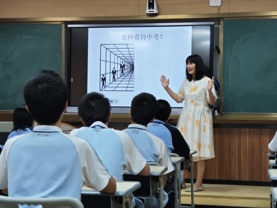 杨萍老师指出,很多同学对中考存在误解,认为它是一场“生死之战”,这导致了很多不必要的压力。她鼓励同学们要以积极的心态看待中考,将其视为一次检验自我、挑战自我的机会,并以泰戈尔的诗句“你误读了这个世界,却还说它欺骗了你”来启发同学们,要学会用积极的心态去面对挑战。