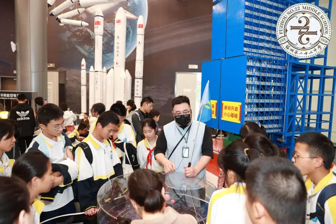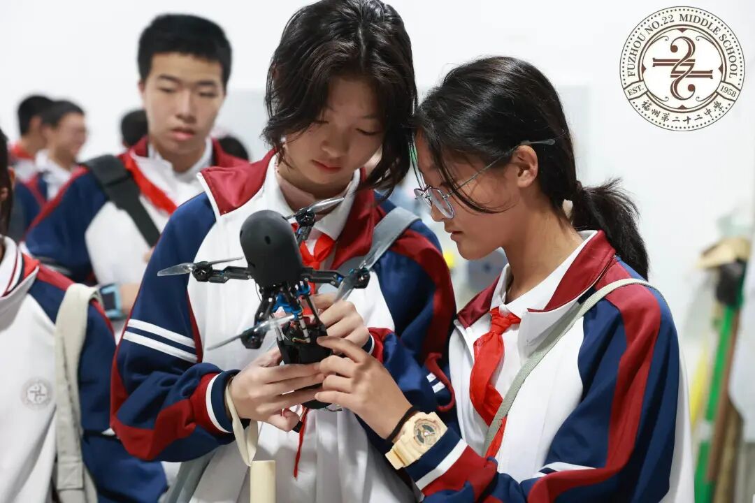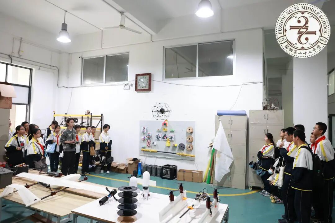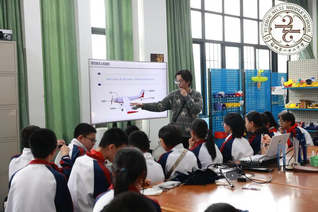 学校还组织部分学生走进福州市科技馆、“榕创汇”无人机小镇。学生们细致观察机器人、航天模型、生物科技等展品,练习准确、生动的说明性语言表达;阅读展板上的科技说明文,分析其结构、语言特点和说明方法,并与课本中的说明文单元(如《中国石拱桥》《大自然的语言》)进行对比学习;围绕“科技改变生活”“未来福州”等主题,进行创意写作或科幻微故事创作,激发对科技与人文关系的思考;引导学生思考福州籍科技精英的贡献,以及当代科技发展如何延续福州“海纳百川、敢为人先”的城市精神。