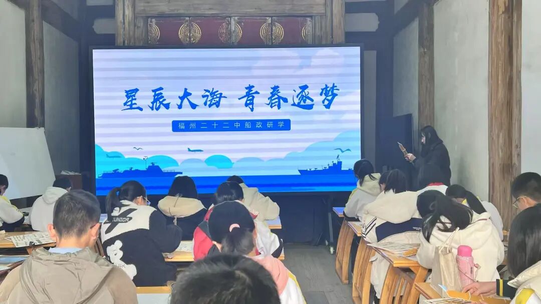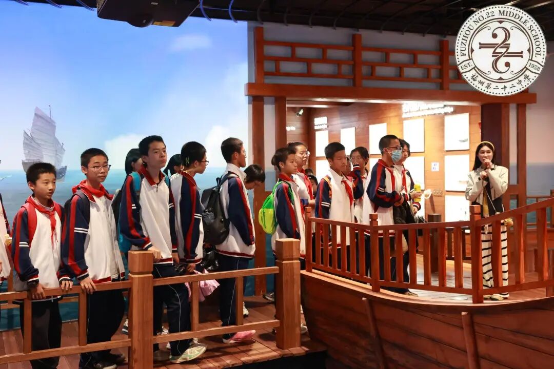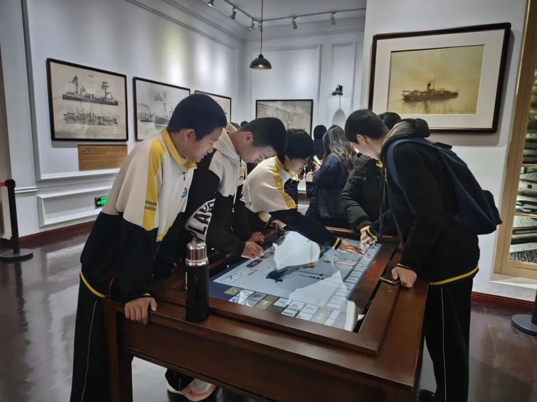 学校特别组织部分学生探访中国船政文化景区(马尾)。在船政衙门、船政学堂旧址、轮机车间、船政博物馆,学生们系统了解了近代中国“开眼看世界”、自强求富的壮阔篇章。他们触摸着百年船坞的基石,凝视着船政学堂的课桌,深刻体悟沈葆桢、严复、詹天佑等先驱“爱国、科学、创新、图强”的船政精神。同时,学生们结合所学课文,撰写了《船政先贤给我的启示》《从船政看福州近代化》等感悟文章,将历史现场与文本阅读、精神传承紧密结合。