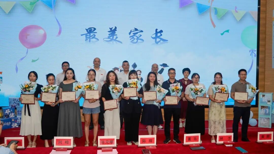 三年来,家校紧密无间,感谢三年来默默支持学校工作的家委们,感谢他们提供了强大的后方支援,携手共待花开。校领导为各班家委代表颁发奖状,学生们为他们送上鲜花。聚光灯下,"最美家长"们的笑容,是孩子们身后最坚实的力量。