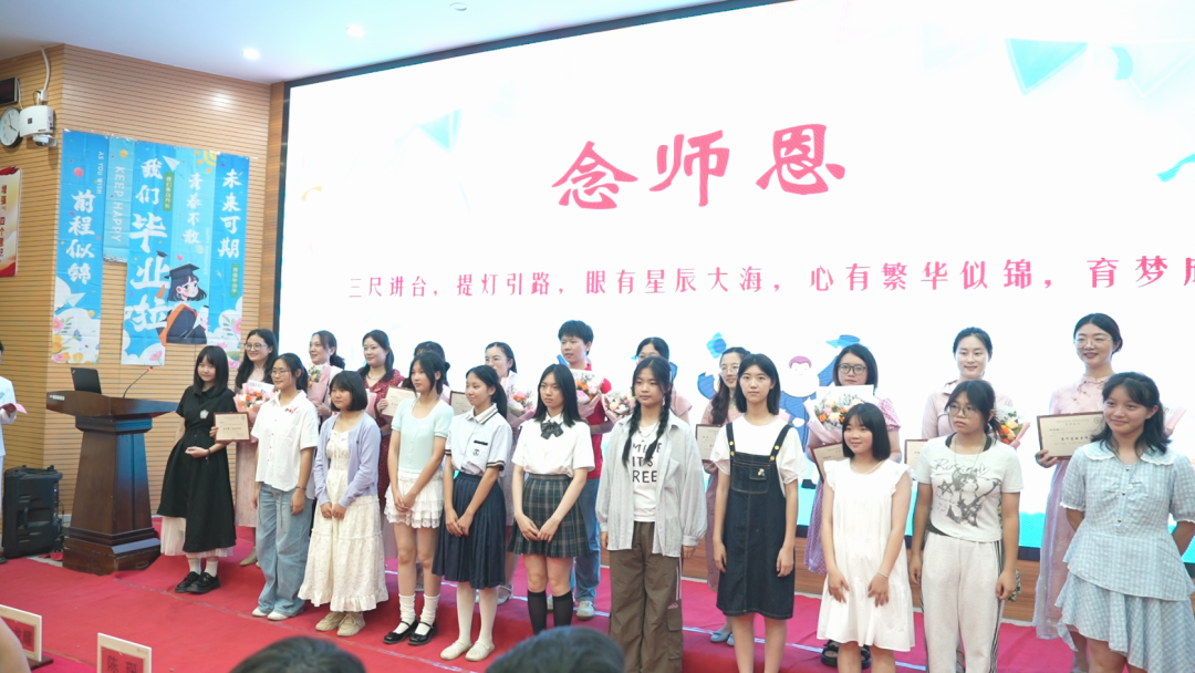 三年的初中生活,像一首回味悠长的歌。带着梦想与期待,三年里,老师们奉献自我,铺就学生通往知识殿堂的阶梯。三年风雨,他们同舟共济,一起走过千百个日日夜夜,同学们带着满满的不舍与感动,向敬爱的老师送上特别的奖状与鲜花,感恩他们的辛苦付出。一朝沐杏雨,一生念师恩!