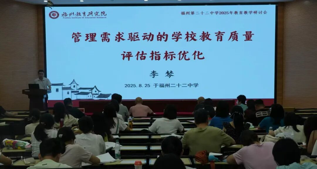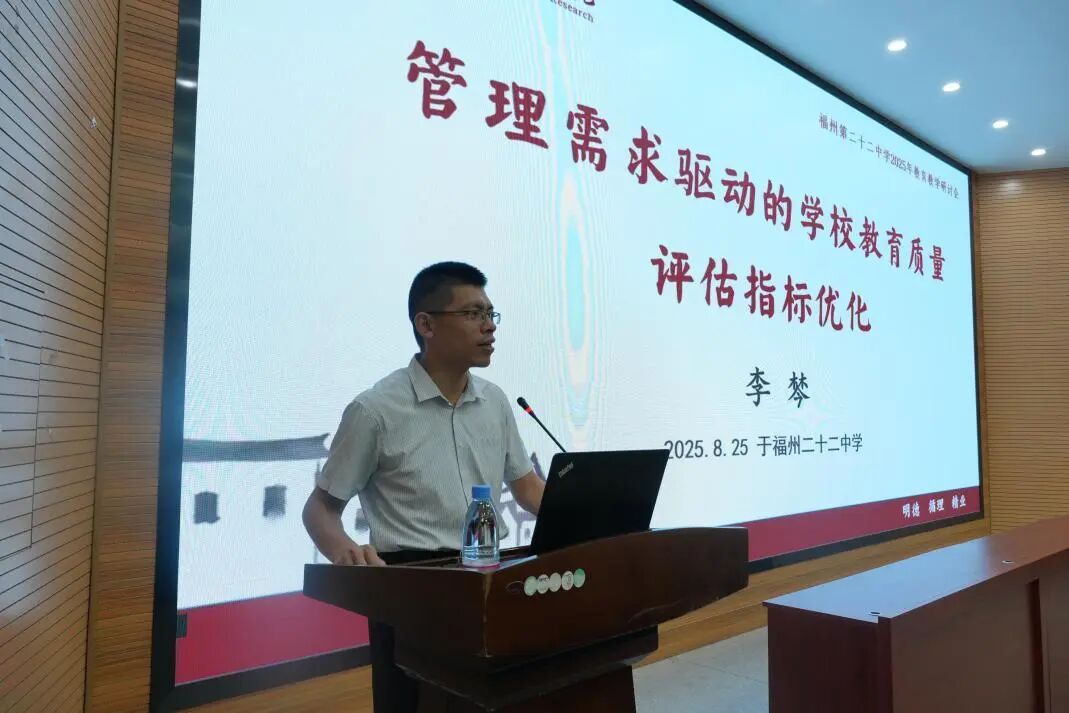 福州市教育研究院副院长李棽带来《管理需求驱动的学校教育质量评估指标优化》专题讲座,用生动的案例、前沿的教育理念,从“如何用好质量检测数据”、“生成式人工智能对备考的助力”等方面,围绕“教育质量评估指标优化”这一主题,引导全体教师关注AI赋能、赛课提质等促进教育质量提升的方法,勉励老师关注学生素养整体提升路径的设计逻辑、实施策略等,为教师们搭建起“理论+实践”的学习桥梁。一个多小时的讲座中,教师们认真聆听、细致记录,不时点头共鸣,为后续教学实践积累了宝贵经验。