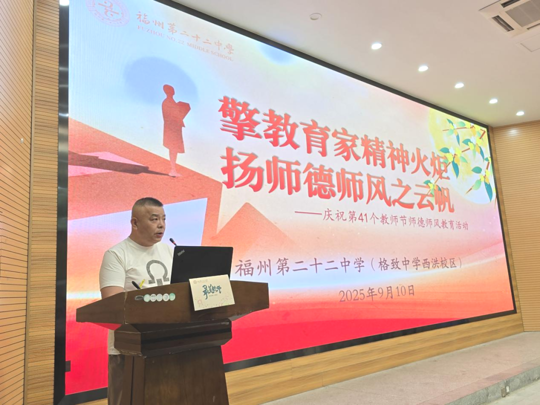 活动接近尾声,陈琛再次聚焦 “师德师风建设”,为全体教职工指明未来方向:“愿我们以‘理想信念’为炬,让‘教育强国’的种子在学生心中生根;以‘育人智慧’为翼,让因材施教的阳光照亮每个孩子;以‘仁爱之心’为帆,让二十二中成为‘师德高地、育人沃土’。”