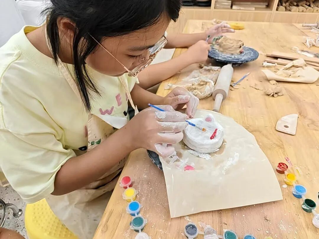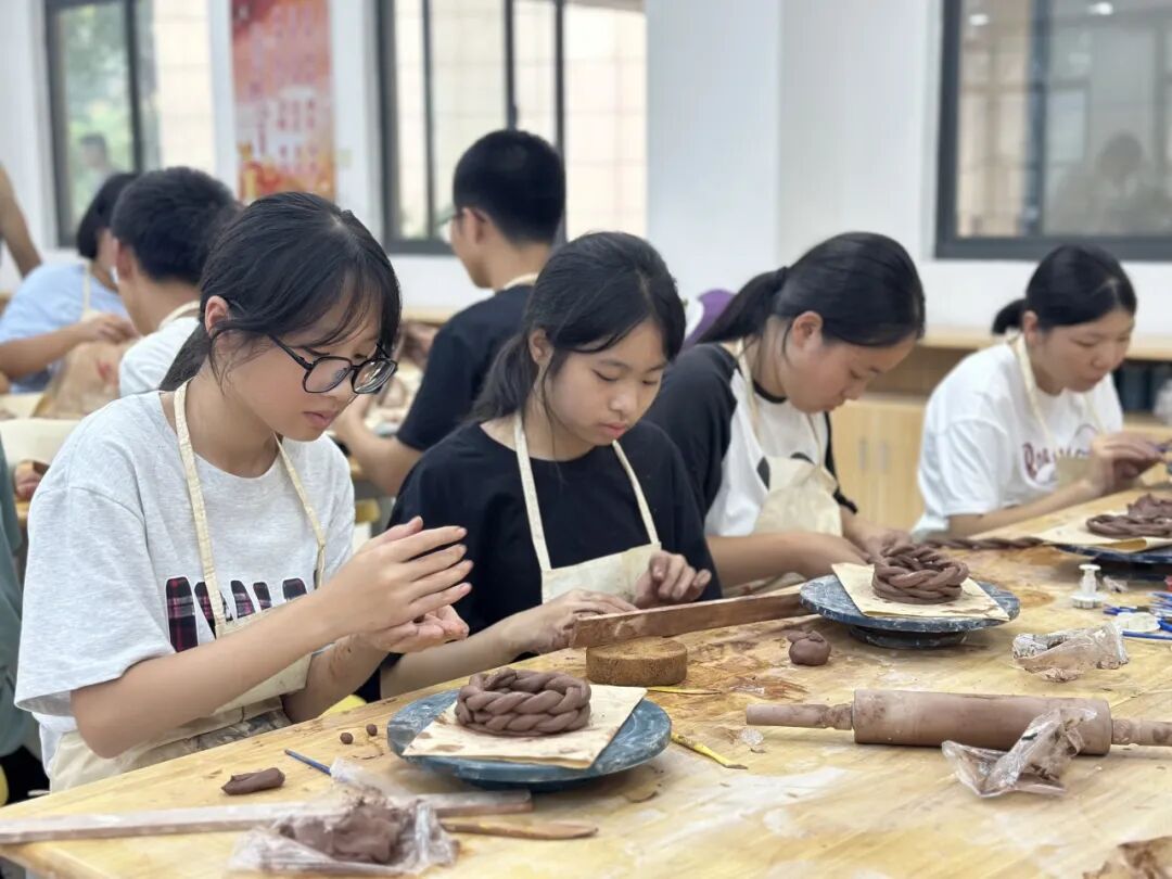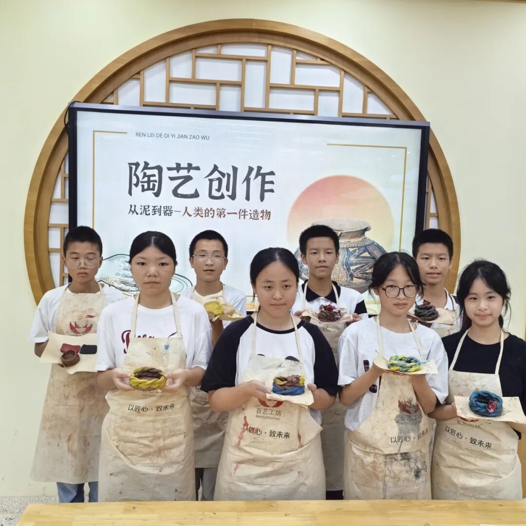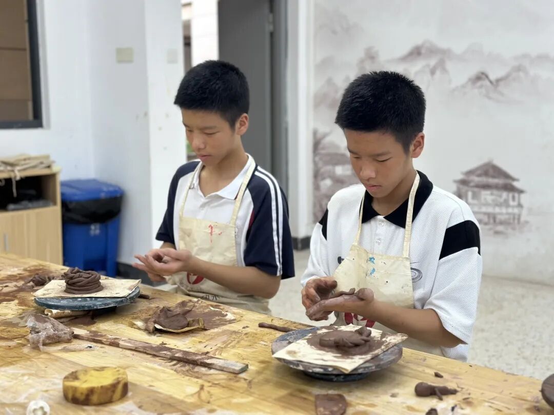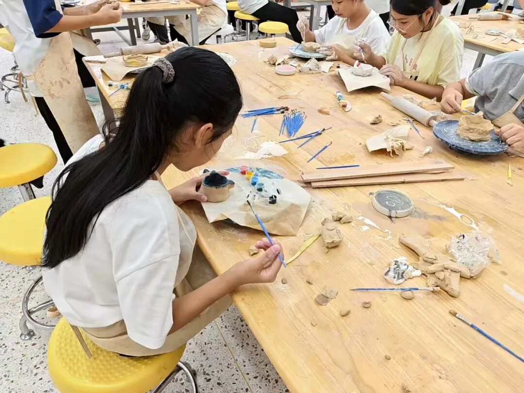 孩子们围坐于原木工作台前,专注揉捏陶泥,通过拉坯、塑形、彩绘等步骤亲手制作陶碗,他们不仅体验到陶艺的温度与乐趣,更深刻感受到传统手工艺的专注与坚持。该课程将劳动教育与美育相结合,以陶育心,在捏塑打磨中传承文化,培养青少年的耐心与创造力。