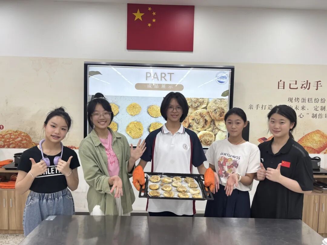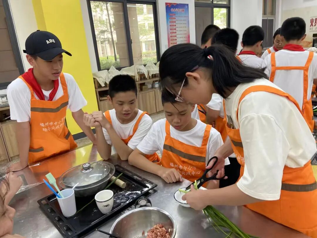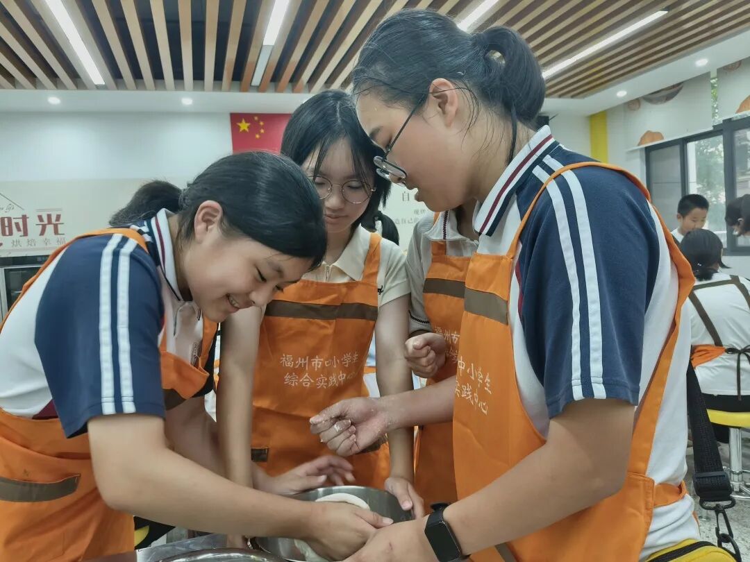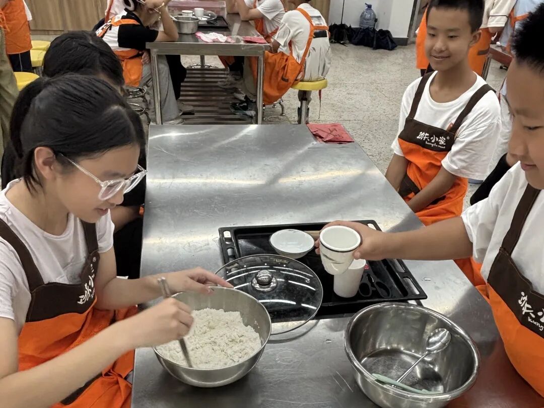 学生们在老师的指导下制作永泰葱饼。孩子们准备食材(清洗、剪切葱段)、和面搅拌(将面粉、水等混合揉制)、包馅成型后撒上芝麻,最后送入烤箱烘烤至金黄。该活动不仅传承了永泰地方美食文化,更通过实践培养了学生的劳动技能、协作精神和创造力,体现了“寓教于乐”的综合教育理念,让学生在体验中学习传统技艺与生活智慧。