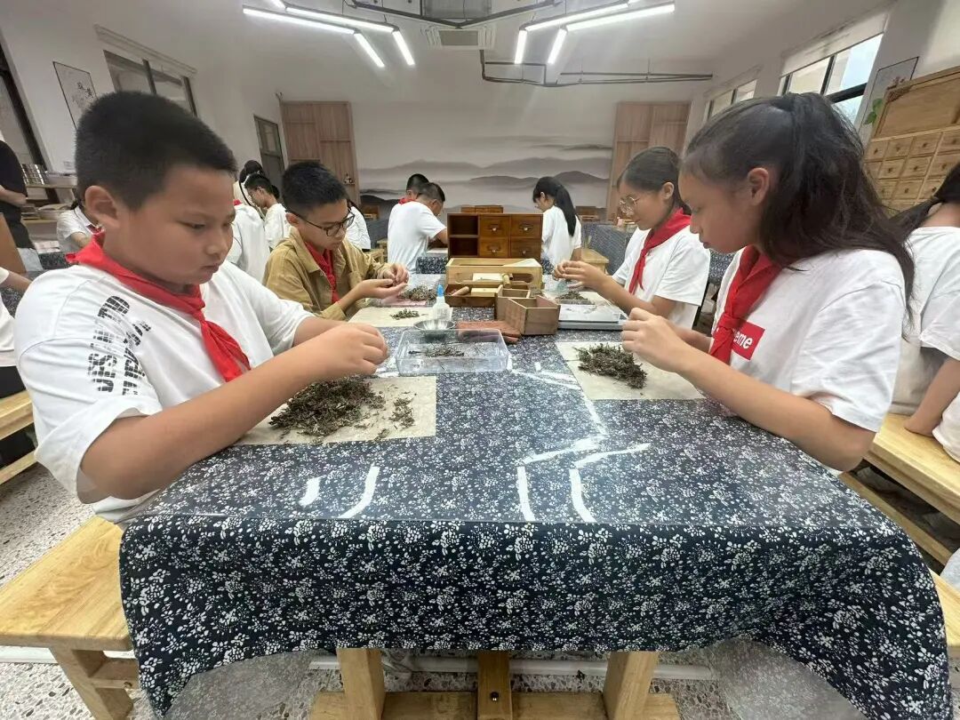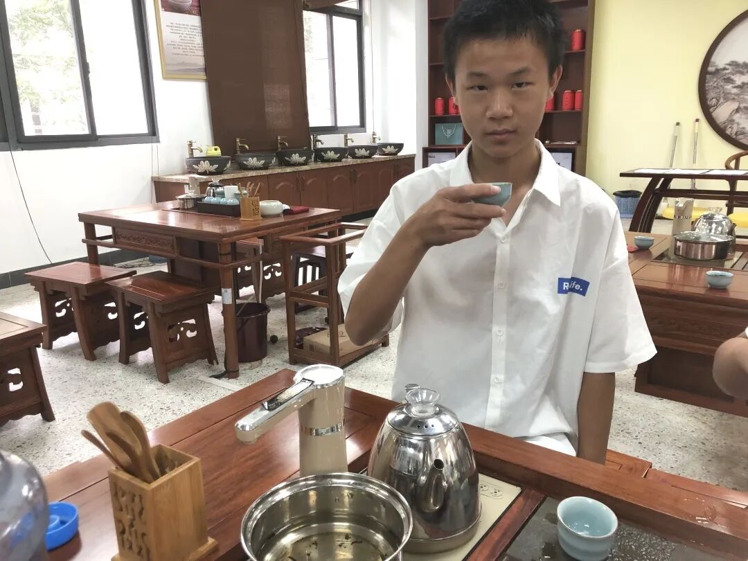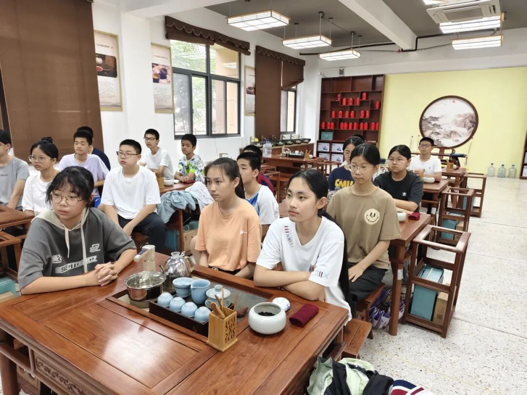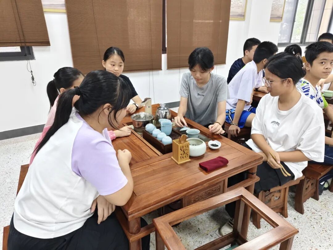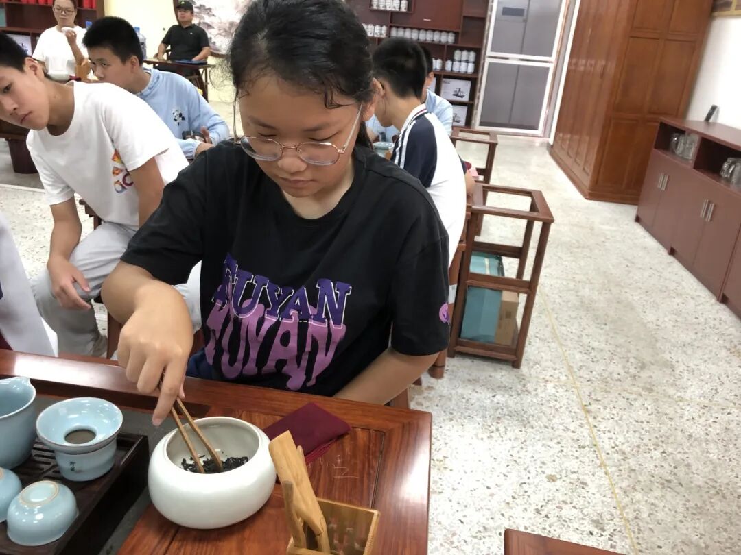 孩子们在专业教师指导下,学习茶叶选取、器具使用及盖碗冲泡、奉茶礼仪等核心工序。他们专注进行温杯、置茶、冲泡等操作,通过亲手实践感悟茶道精细雅致。多位同学表示,“活动不仅让我们掌握了传统泡茶工序,更在宁静氛围中深度体验了中华文化魅力,是一次身心放松的文化之旅。”