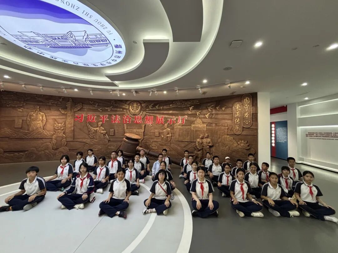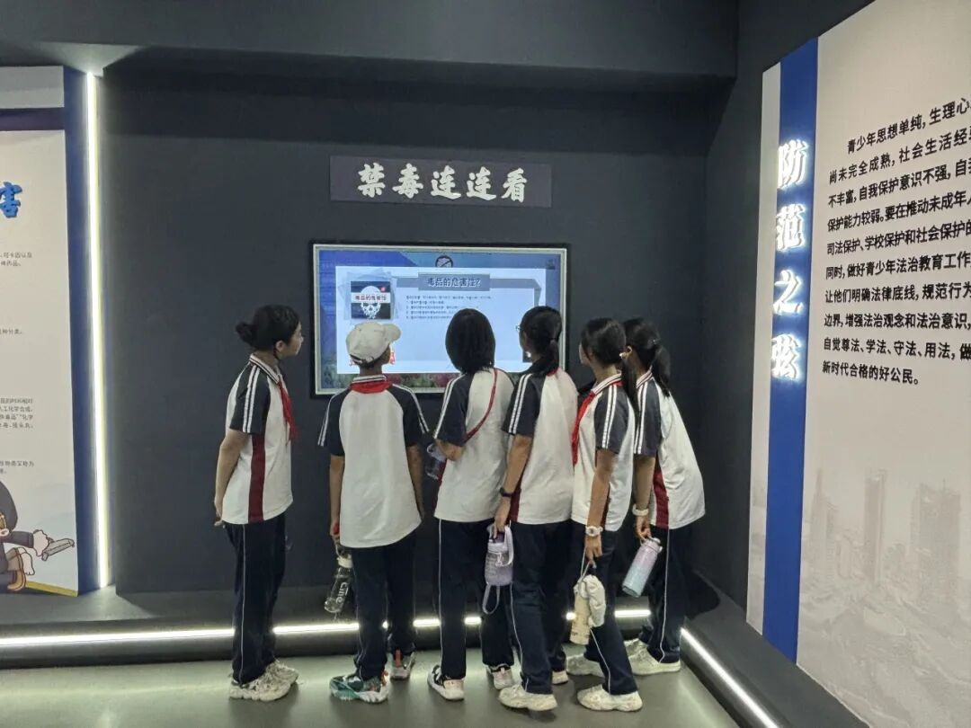 营地教师为参训学生开展了《人人守法,法护人人》《沿着总书记的足迹—闽山闽水物华新》的思政课程。随后,学生们参观了“习近平法治思想展示厅”,通过浮雕墙、图文展板等深入了解法治文化建设。在禁毒教育专区,学生们通过“禁毒连连看”互动显示屏,直观认识毒品的危害性,增强了自我保护意识。展厅内“习近平关于青年的重要论述”展区更是引发学子们深刻思考,激励他们树立远大理想。最引人注目的是模拟法庭活动。学生们通过角色扮演,亲身体验法庭审判流程。悬挂的国徽、审判席、书记员席等专业布置营造出庄严肃穆的法庭氛围,让同学们在实践过程中深刻理解法治精神,增强法律意识。
